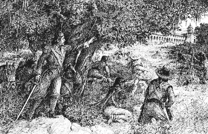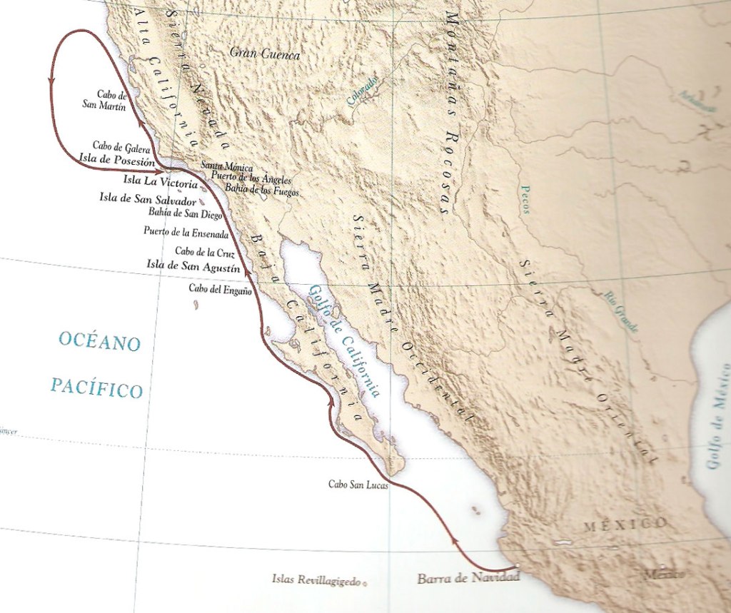 Juan Rodríguez Cabrillo led a maritime expedition along the coast California on behalf of Spain in 1542. In October, Cabrillo’s crew passed fog-shrouded Anacapa (‘Anyapax, in Chumash, literally meaning “mirage” or “illusion”). Lacking a consistent freshwater source, the island (islands, actually) was uninhabited by the Chumash but used as a hunting ground. The Spanish next stopped at the island of Tuqan, which they renamed “San Miguel.” There they anchored for a few weeks. The crew sailed on through the Chumash territories of Xexo (now Santa Barbara County) and Xucu (now Ventura County), which were then at war, before sailing on in November to the land of the Miwok. Cabrillo and his crew returned to Southern California on 23 November, anchoring at Pimu’ngna in order to make repairs and to rest. In December, the crew had apparently worn out their welcome or otherwise offended the Pimuvit, as the island’s residents were known, as they attacked their uninvited guests. Cabrillo suffered an injury and the crew left. Cabrillo’s injury developed gangrene and he died on 3 January 1543. He body was buried on the Chumash island of Tuquan. Cabrillo’s crew then departed, arriving at Barra de Navidad in April.
