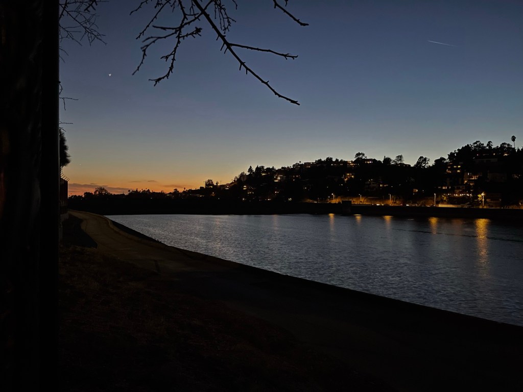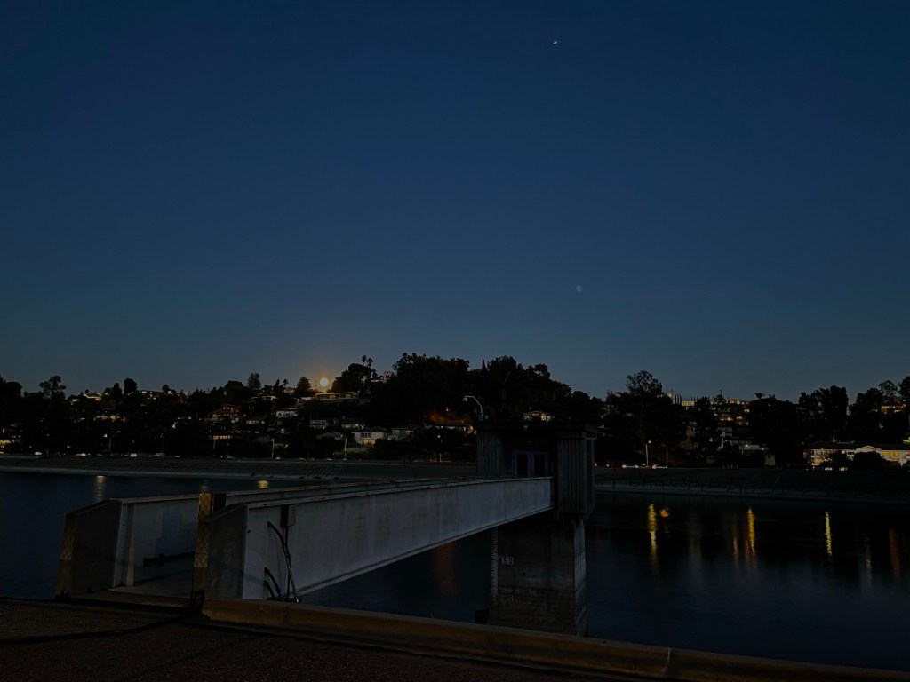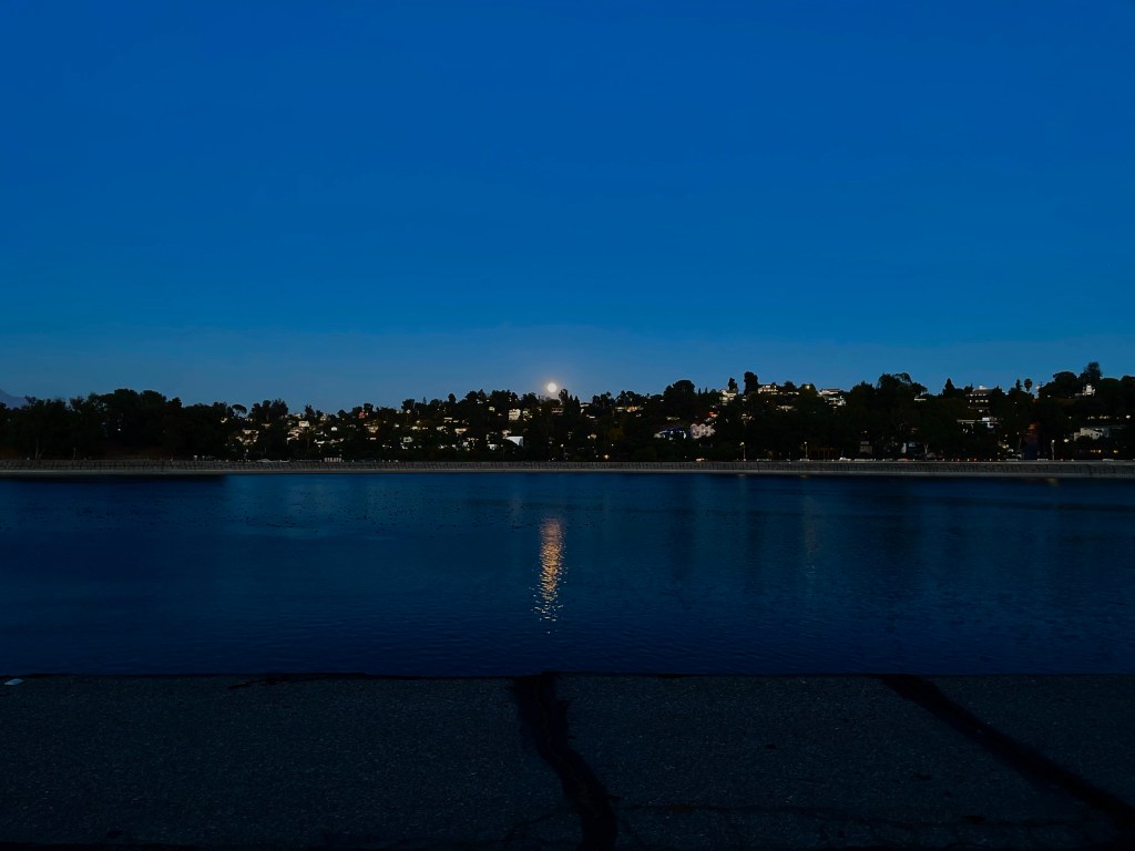 Afterward, I recommended to the LADWP that perhaps they might make a practice of locking the exit after locking the entrance in order to avoid just such a situation. Furthermore, since the posted signs state that it’s open during “daylight hours,” perhaps they could wait until after the sun has set to lock the gates. The LADWP, for their part, didn’t even offer so much as an auto reply. Despite my suggestion, I actually wish that the deparment left the gates open all the time — and that the high fence around the property was replaced with a low fence closer to the water. Obviously, I don’t want anyone to drown in the reservoir, whether accidental or not, but I’m certain that magnitudes more Angelenos drown in the Pacific Ocean, backyard swimming pools, and even bathtubs than in reservoirs — and we don’t install fences around those. But next time you stroll around the reservoir, perhaps spare a though for those unfortunates whose lives were claimed by those deceptively placid waters.