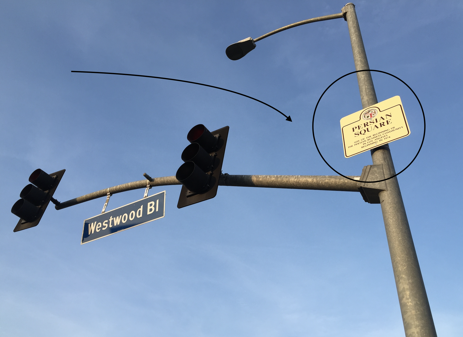 There is, within Tehrangeles, an intersection designated Persian Square. Car-crazed councilman Paul Koretz (who killed Uplift Melrose) sponsored a motion to recognize it as such in 2010. It is not, however, a square in any sense at all — meaningful or otherwise. A “square,” in the civic sense, is a planned public space that usually hosts various public events. Think Beijing’s Tiananmen Square, Moscow’s Red Square, Cairo’s Tahrir Square, Berlin’s Alexanderplatz, Seoul‘s Gwanghwamun Plaza, Taipei‘s Memorial Hall Square, or our own Pershing Square. Persian Square is not such a square. It’s not even square shaped. Instead, Persian Square is a rectangular neighborhood traversed by ten lanes of traffic with a tiny beige sign hung above it. The city insists, however, on making these hollow gestures instead of doing anything meaningfully beneficial, like creating an actual car-free square where humans can gather and enjoy a bit of respite from the automobile