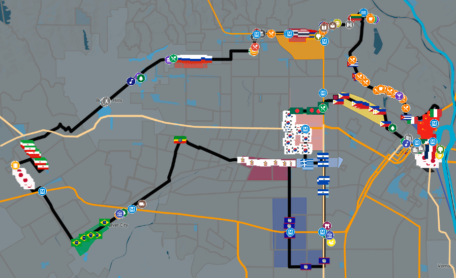 “What does any of this have to do with Los Angeles?” you may be asking yourself around now. I will tell you. Los Angeles is one of (perhaps the most) the most diverse cities in the world. It’s home to the US’s largest communities of Australians, Burmese, Canadians, Indonesians, and Mongolians. Metro Los Angeles is home to the world’s largest communities of Armenians, Belizeans, Cambodians, Filipinos, Guatemalans, Hawaiians, Iranians, Koreans, Mexicans, Salvadorans, Taiwanese, Thai, and Vietnamese (outside of their respective homelands). There are or have been in the past at least three distinct Koreatowns, five Filipinotowns, five Chinatowns, and eight Japantowns. Today there are fifteen “official” ethnic enclaves and at least fourteen colloquially recognized ones, and at least eighteen that have mostly vanished. All of this is to say that to the local explorer, you can without too much difficulty get a bit of a sense of the wider world without ever leaving home.