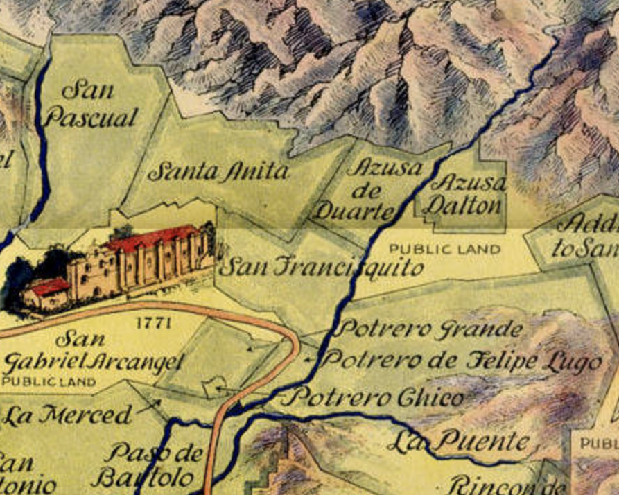 Detail of Title Insurance and Trust Co.’s Map of the Spanish and Mexican ranchos of Los Angeles County (1937)
