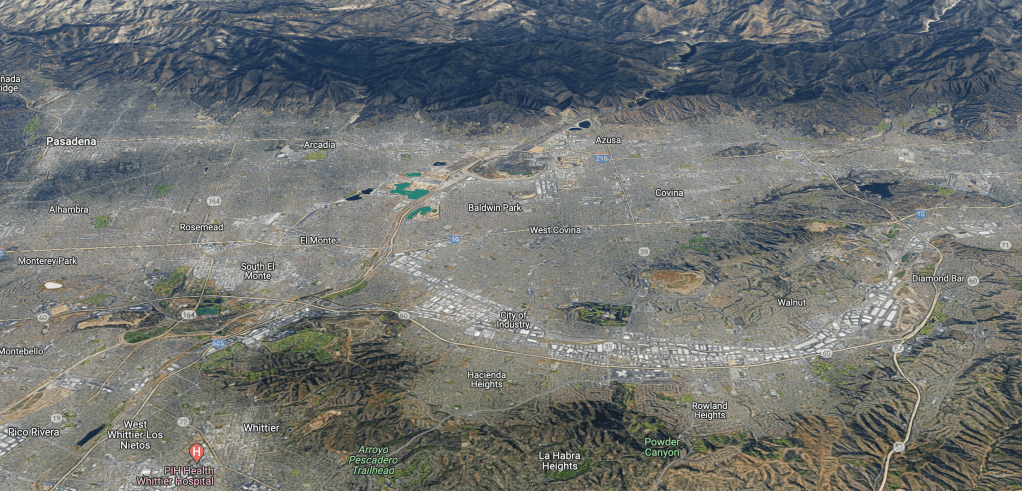 The San Gabriel Valley is home to roughly 1.8 million people — about the same as live in the San Fernando Valley. If either were a single city they would become the fifth most populous in the US (overtaking Phoenix) and the second most populous in California, after Los Angeles. The San Gabriel Valley, though, is home to 26 cities: Alhambra, Arcadia, Azusa, Baldwin Park, Bradbury, Covina, Diamond Bar, Duarte, El Monte, Glendora, Industry, Irwindale, La Puente, Monrovia, Monterey Park, Pasadena, Rosemead, San Dimas, San Gabriel, San Marino, Sierra Madre, South El Monte, South Pasadena, Temple City, Walnut, West Covina. The San Gabriel Valley is also home to 26 unincorporated communities: Altadena, Avocado Heights, Azusa Islands, Bassett, Charter Oak, Citrus, Covina Islands, East Azusa, East Pasadena, East San Gabriel, Glendora Islands, Hacienda Heights, Kinneloa Mesa, Mayflower Village, North El Monte, Ramona, Rowland Heights, San Pasqual, South Monrovia Island, South San Gabriel, South San Jose Hills, Unincorporated Azusa, Unincorporated Glendora, Vincent, West Puente Valley, and Valinda. There are also two large unincorporated areas that can’t really be described as communities — or at least not human ones — South Diamond Bar and Whittier Narrows.