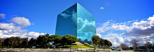 Sears, Roebuck and Company, Pacific Coast Territory Administrative Offices… better known as “the Blue Cube.” The Blue cube was designed by A.C. Martin & Associates in the Late Modern style. It was completed in 1971. Although only twelve stories tall, its windows are designed to make it appear twice that. Sears moved out in the 1980s and it was purchased by the Los Angeles County Department of Public Works.