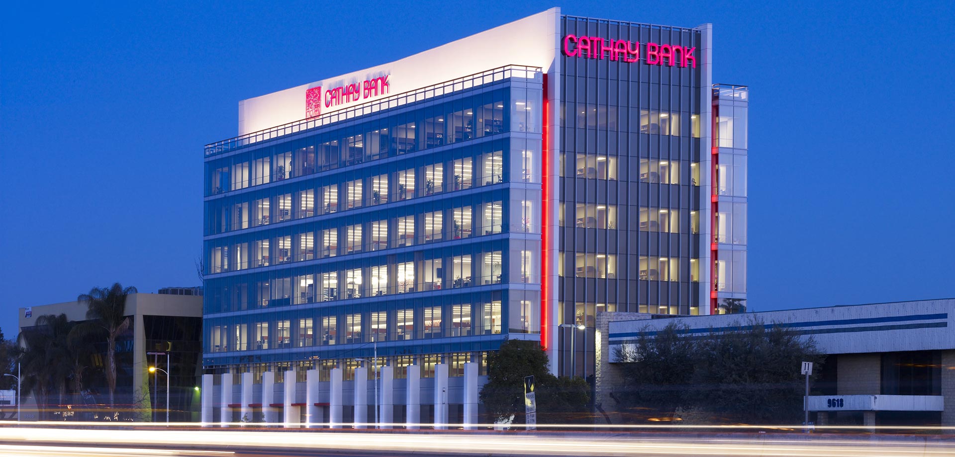 Honorary mention goes to West Covina’s thirteen-story Eastland Tower, completed in 1989. Honestly, it’s not more attractive than any of the 33 mid-and-high rises of Pasadena. There’s something about solitary skyscrapers, though, that makes them appear grander than they otherwise would, dramatically rising as they like Orthanc rising above the sprawling plains of Isengard. And in the case of Eastland Tower, it’s not Saruman up top, but the giant, grinning Jollibee. Shout-outs, too, to West Covina’s six-story New Formalist Chase Bank Building (1969) and El Monte’s seven-story International Style Cathay Bank Building (1972).
