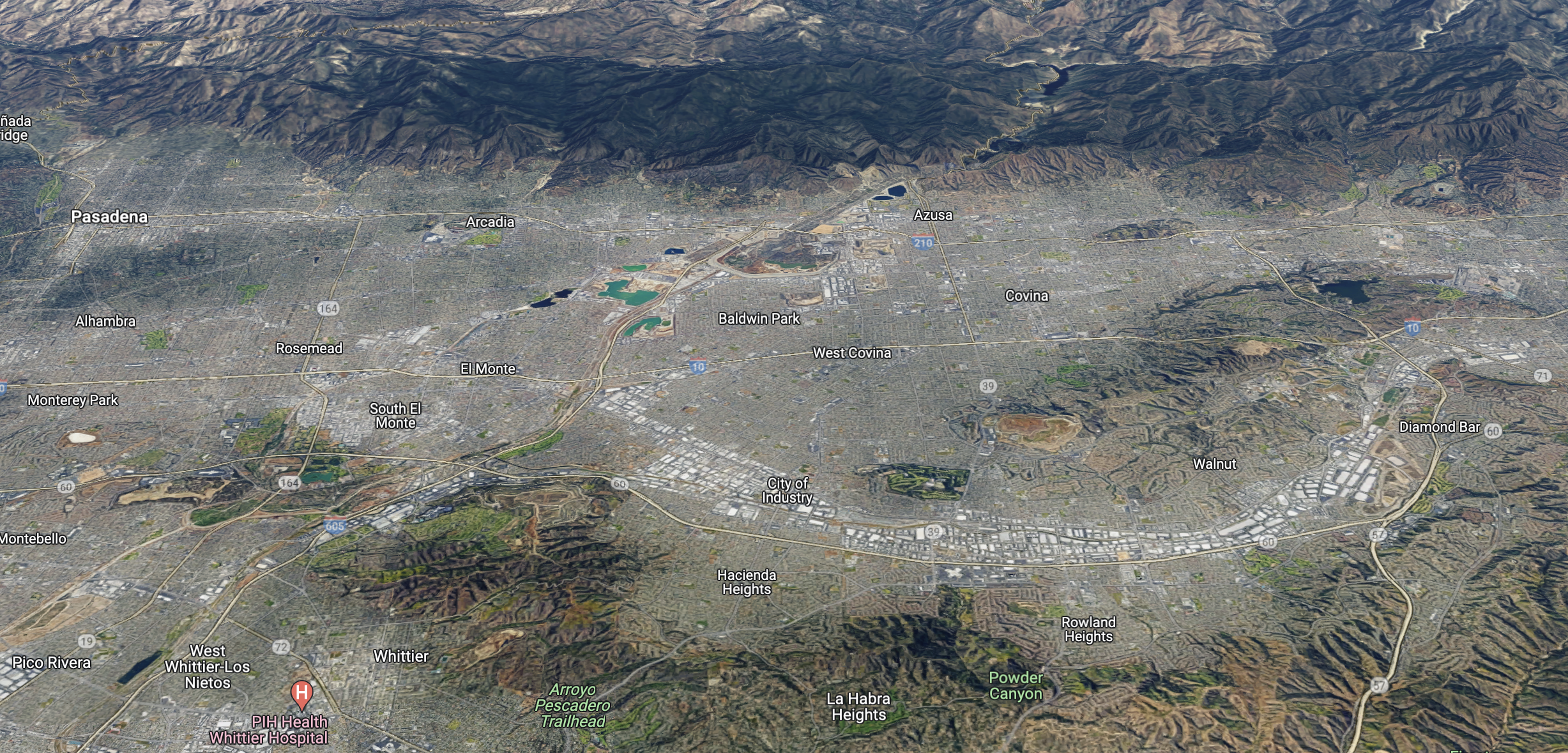 The San Gabriel Valley and its surrounding hills, mountains, and communities