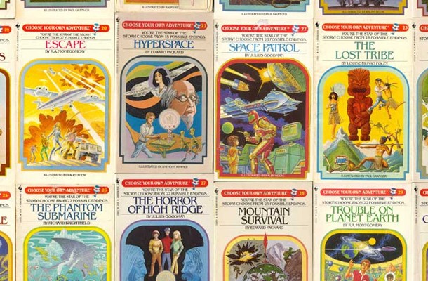 There were predecessors to the gamebooks of the ’70s that could be described, if not as gamebooks, at least as interactive fiction. In some ways, Georg Büchner‘s play, Woyzeck, was an early example. When Büchner died in 1837, he hadn’t specified the intended scene order of his play and no matter what order they’re performed in, the results are nightmarish and bizarre. The play inspired both Alban Berg‘s excellent 1925 opera, Wozzeck, and Werner Herzog‘s excellent 1979 film, Woyzeck. There’s a fictional gamebook in Jorge Luis Borges‘ Examen de la obra de Herbert Quain, (1941). Another Argentine writer, Julio Cortázar, published Rayuela, in 1963, a stream-of-consciousness counter-novel that included expendable chapters and two possible endings. The French literary group Oulipo developed an interactive style of fiction and theater and member Raymond Queneau wrote the interactive Un conte à votre façon in 1967 (which you can now play online).
