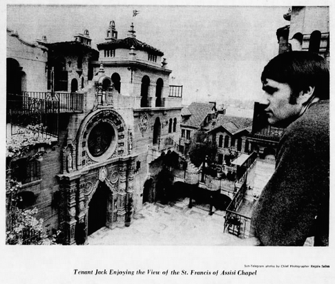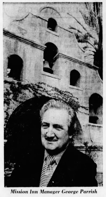 DeWitt Hutchings died in 1956. Hotelier Benjamin Harrison Swig, owner of the Fairmount Hotel chain, took over and operated it in receivership until 1968. Some of the rooms were converted into apartments and lodging for students at UC Riverside. The Mission Inn had been designated a California Historical Landmark in 1961 but it and its surroundings were both showing their age. By the 1970s, Downtown Riverside — like so many downtowns of the era — was not a happening place. All of the action had moved to indoor shopping malls. And lodgers didn’t want to stay in charming places, apparently preferring the familiarity and sterility of motel chains.