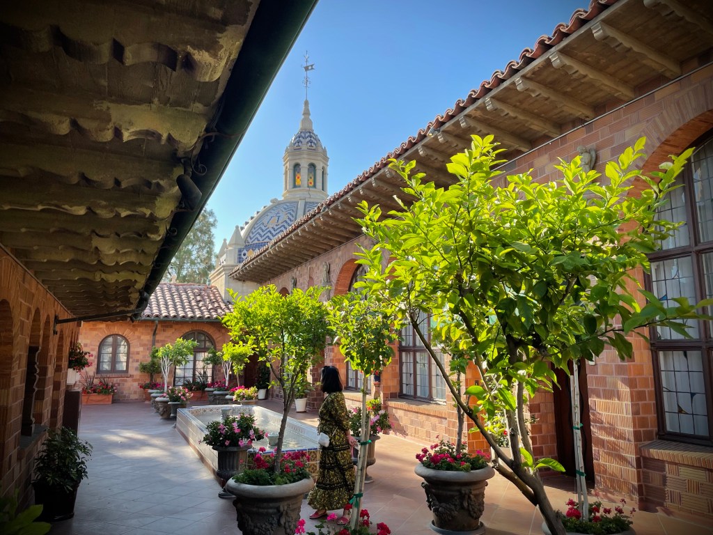 As much difficulty as Miller apparently had settling on a name for the inn, he seems to have been even more challenged by the idea of settling on a single architectural style. On the other hand, like so many other Southern Californians, perhaps Miller just wasn’t concerned much with authenticity or good taste. Whatever the reason, as the property grew, so did the number of revival styles which include Mediterranean, Mission, Moorish, New Spanish Baroque, Renaissance, Spanish Colonial, and Spanish Gothic. As it was built, Miller traveled the world collecting objects that he incorporated into and displayed throughout the inn, more often than not, without much apparent explanation, rhyme, or reason.