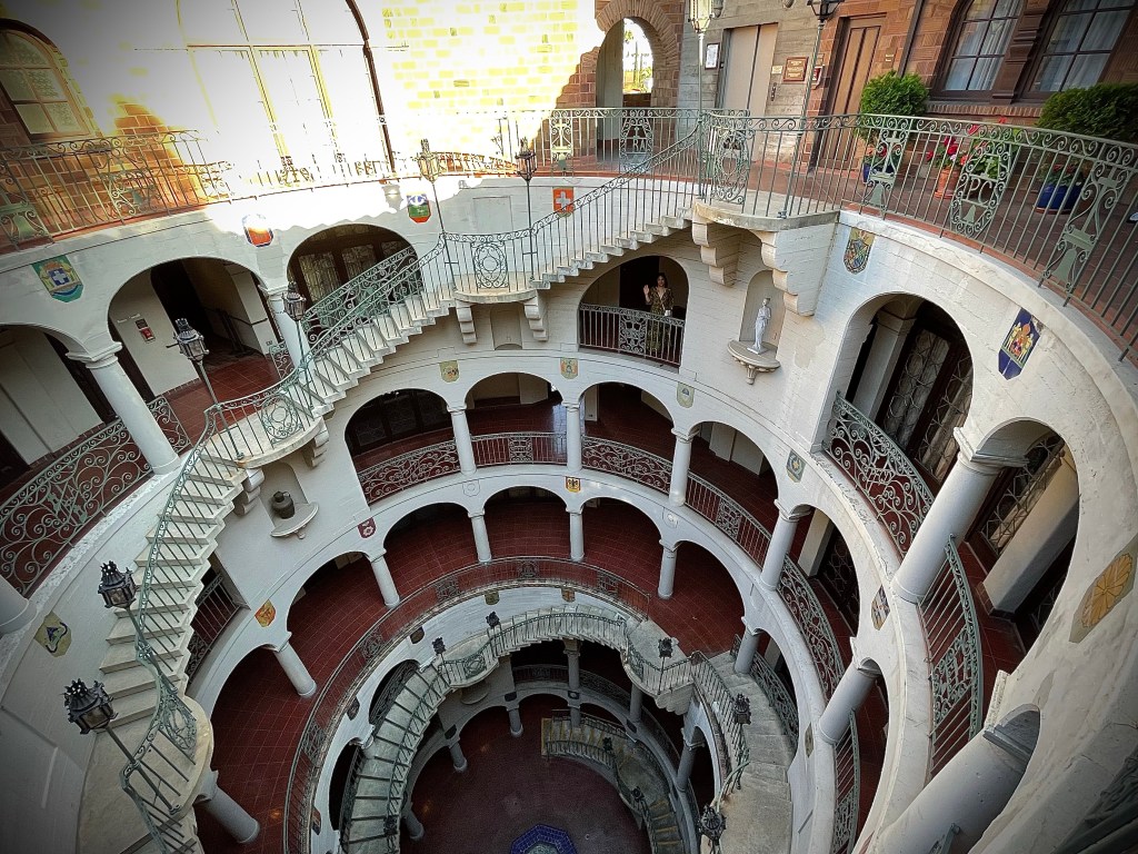 The inn participates in or hosts events including the Feste dell’Amore, the Festival of Lights, the Pumpkin Stroll, and guided tours of the inn — and as much fun as it might be to stay in the Mission Inn around Christmas or Halloween, much of the everyday fun is surely exploring the inn’s interior passageways, wandering across the arcades, descending the vertiginous rotunda staircase, opening random doors, wondering where tiny staircases go, and just generally getting lost. I knew from the vault lights that there was a subterranean level but didn’t learn until I’d left that there are mock catacombs.