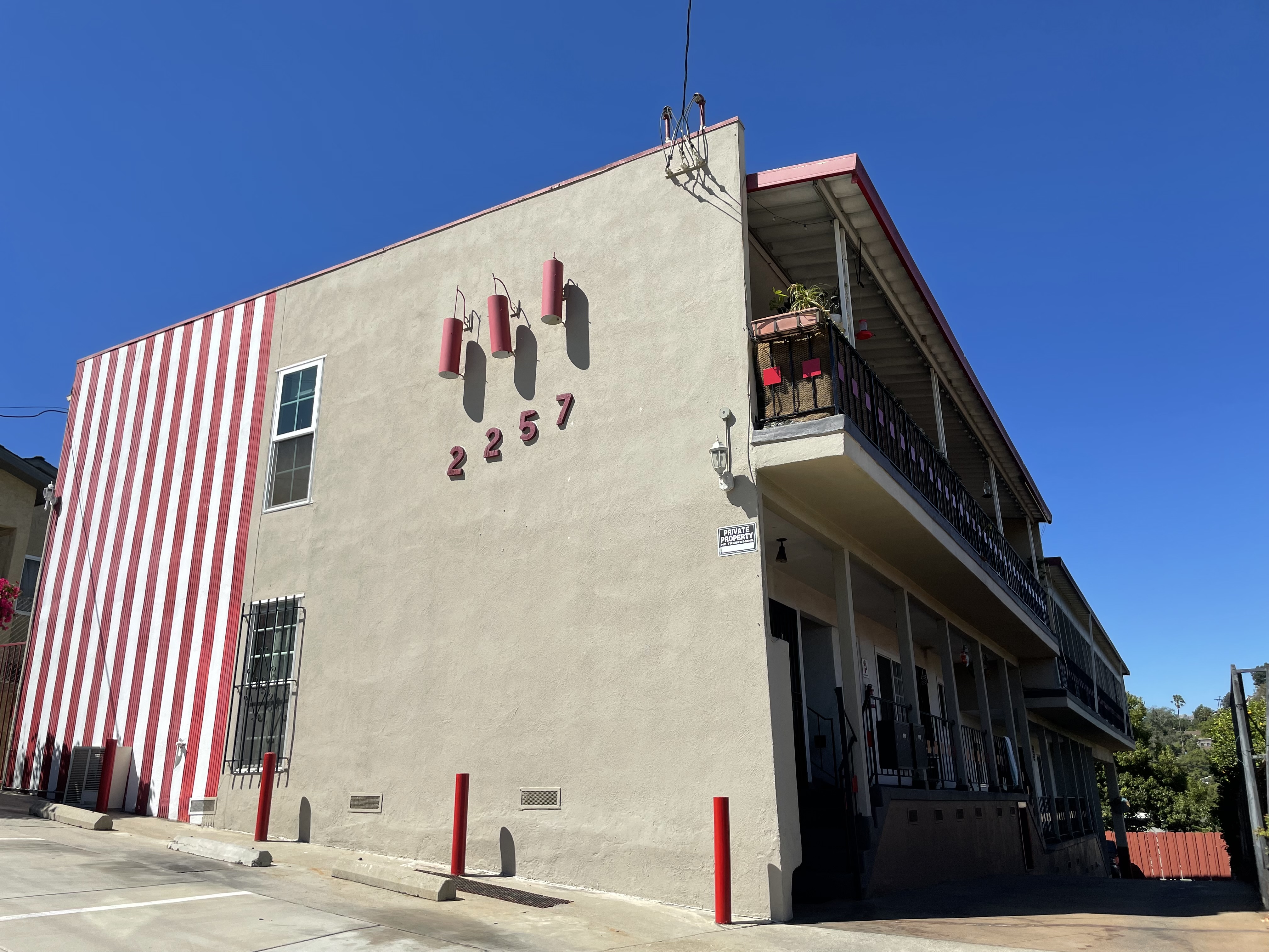 Some motel-style apartments have the same kitsch appeal as dingbats before them, too. The building in which I live was built by a Chinese American family in the early 1960s. They installed a steep, decorative roof and protruding beams meant to evoke Polynesian architecture — or at least Tiki culture. There are volcanic rocks incorporated into the facade and landscaping. I wonder if our motel-style building ever had a name — maybe something like “the Seven Seas of Silver Lake” or “Rowena Atoll.”
