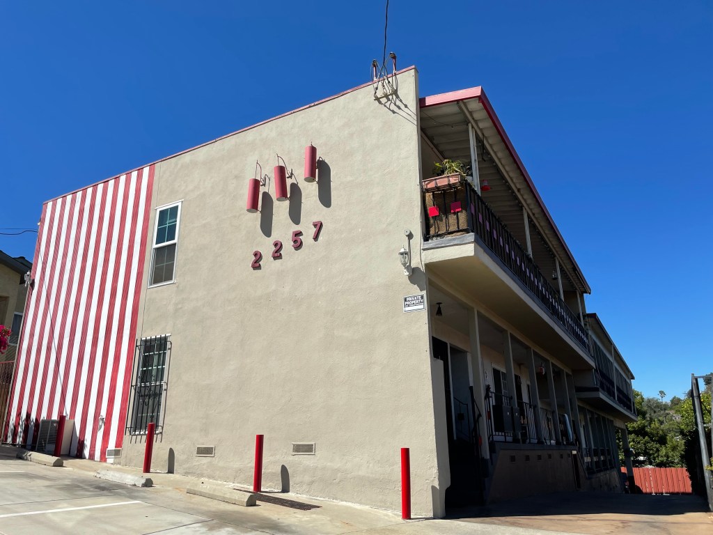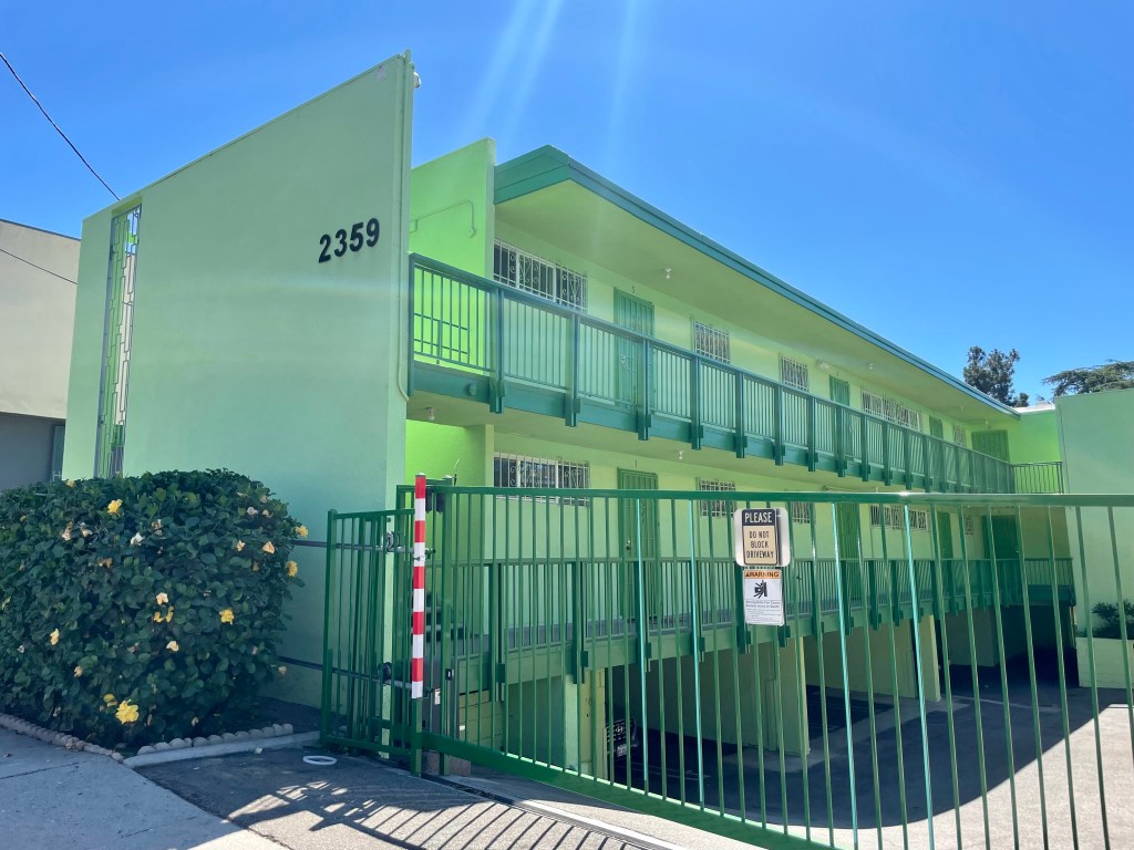Metro Los Angeles boasts numerous varieties of apartments and other multi-tenant housing types. Bungalow courts and garden apartments all have always enjoyed a healthy following. I’m sure I’m not the only Angeleno who loves a nice courtyard apartment or those hotel-style mid-rises topped with neon signs that are found throughout Midtown and Westlake. Even the much-derided dingbat has its devotees. In fact, much of the finest residential architecture in Los Angeles is exemplified by apartment buildings — thanks in no small part to the visionary work of architects like Gregory Ain, Greene & Greene, John Parkinson, Norman W. Alpaugh, Richard Neutra, Rudolph Michael Schindler, and Walker & Eisen, to name but a few. There are for more apartments, though, which were never considered for any design awards and pretty much just do the job of housing Angelenos. I count my own building as one of those — and I’m not even sure what, if any, widely-recognized name there is for this sort of architecture. I call it, for lack of anything better, “motel style.”