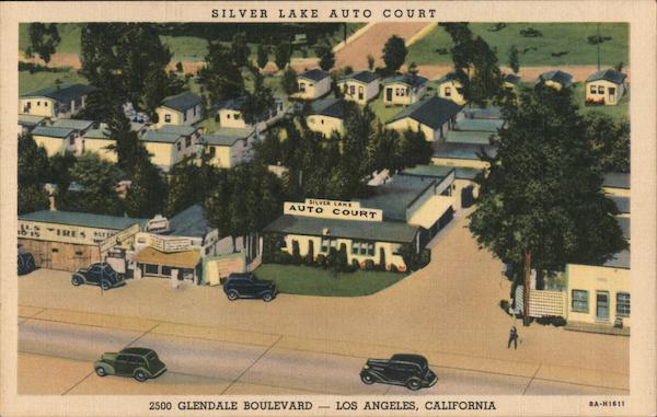 I’ve never seen any writing about motel-style apartments but surely they take their cue from the design of motels. The motel arose, not surprisingly, in the then-newly car dependent Southern California of the 1920s. It predecessor was the auto camp, auto court, or motor court — a cluster of small, furnished dwellings that provided sleeping and parking accommodations for motor tourists and their automobiles. Early on, automobiles were mainly loud, expensive toys for toffs or tools for farmers. By 1925, though, Los Angeles “boasted” twice the national per capita car ownership of any other city (having overtaken the cow town of Des Moines). Suddenly, one in three Angelenos owned a car or truck. With no real work need for them, motorists turned to driving for leisure. Motor courts grew into motels. The first motel, the the Milestone Mo-Tel, opened in San Luis Obispo in 1925.