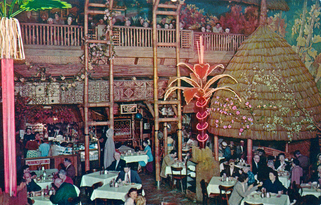 The first location, Clifton’s Cafeteria of the Golden Rule, opened in 1931 at 618 South Olive Street in 1931. There, Clinton established his rule of not turning any customers away — even if they had no money whatsoever. Each location, too, had its own, inevitably kitschy, theme. The second location, the one that still stands on Broadway, opened in 1935 and — on account of its mountain lodge theme — was named Clifton’s Brookdale after the Brookdale Lodge in the Santa Cruz Mountains. The original location was re-imagined as Clifton’s Pacific Seas in 1939. That location closed in 1960, was demolished, and replaced with a surface parking lot. The other former locations were in Lakewood, West Covina, Century City, the Financial District, Woodland Hills, Laguna Hills, Whittier, and San Bernardino. Nightclub operator Andrew Meieran bought Clifton’s Brookdale in 2010. It re-opened, minus its 1963 aluminum facade, in 2015. It closed in 2018. It’s since re-opened as Clifton’s Republic although it’s currently just operating as a bar — albeit one in a very memorable setting.