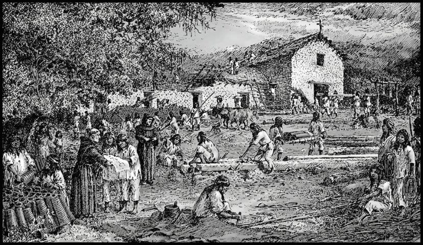 Having found no gold in Alta California, the Spanish had little used for the region and mostly ignored the region for the next 200 years. The Spanish returned in 1769, when Catalonian explorer Gaspar Portolà i Rovira led an overland expedition that was the prelude to the Spanish establishing a network of missions and presidios. Many native peoples were killed by diseases introduced by the Spanish for which they lacked immunity. This is sometimes pointed to by apologists as evidence that the Spanish (and American) conquests weren’t truly genocidal. The diseases they introduced were, for the most part, passed along accidentally. The Spanish and other Europeans, after all, themselves suffered from their own disasters Great Famine and the Black Death and they recovered whereas Native American peoples didn’t (at least not quickly to pre-disease numbers). One key difference, though, is that Europeans, Middle Easterners, and North Africans didn’t have an occupier actively prohibiting their recovery with enslavement and the systematic eradication of their way of life. The missions are brutal places in which children were separated from their parents — and those who attempted to escape from the missions would be punished by having their ears cut off or brands burnt onto their flesh.