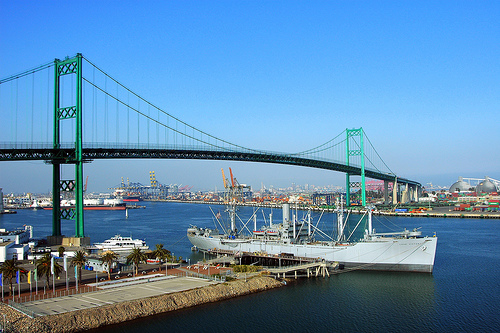 Vincent Thomas (né Tomasevich) was a politician who represented San Pedro’s 68th and 52nd Districts in the California Assembly from 1941–1978. His family came to San Pedro in 1919. After graduating law school, Thomas worked at the French Sardine cannery. In 1940, he moved into politics and began pushing for construction of a suspension bridge to connect San Pedro proper with San Pedro East, on Terminal Island. The Vincent Thomas Bridge opened in 1963 and is the only suspension bridge in Metro Los Angeles. To my mind, the green bridge with its blue lights is every inch the equal of other cities’ suspension bridges but in a city with as many landmarks as Long Angeles, it tends to be overlooked as an icon. That said, film character Neil McCauley refers to it as the Saint Vincent Thomas Bridge in 1995’s Heat.