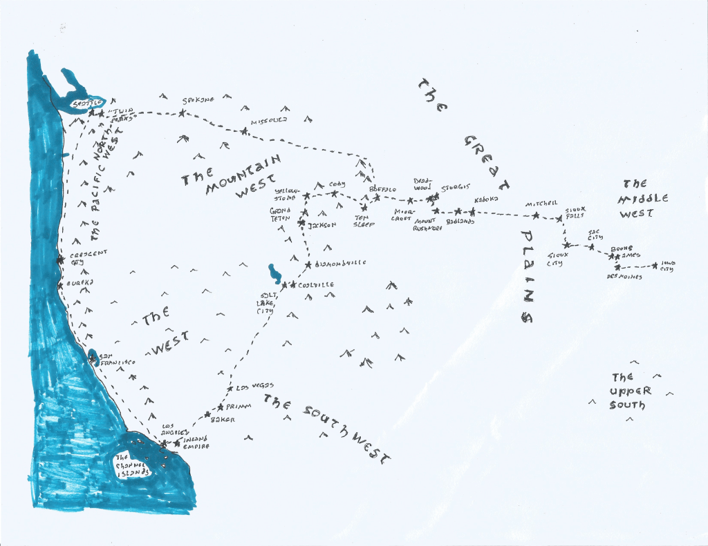 I didn’t know a lot of other places I might consider. I liked Memphis a lot — but I hadn’t seen enough places to make an informed decision. Back then, I’d lived in four states — Iowa, Florida, Kentucky, and Missouri. None of them were exactly calling to me. I’d been to Alabama, Arizona, Arkansas, Georgia, Illinois, Indiana, Kansas, Mississippi, New Mexico, Oklahoma, Texas, and Wisconsin. As much as I liked some of them, I didn’t imagine living in any. Seth had a proposal. How would I like to drive him to Chino in my beige 1988 Ford Taurus? I was game — so long as we didn’t take a direct route. I wanted to see more of the Plains and Mountain West. After I dropped Seth off at home, I’d head up the coast to the Pacific Northwest.