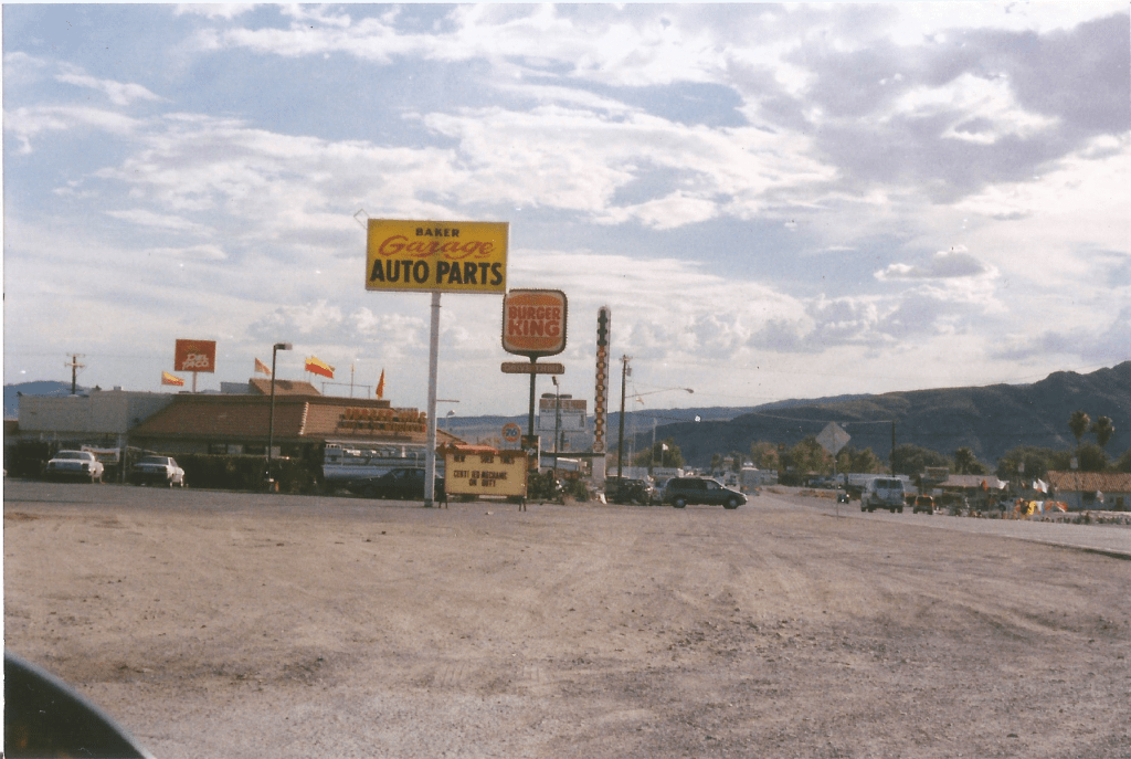 I wondered how hot it was. Baker had the answer. There, the “world’s tallest thermometer” (actually just an electric sign that displays the temperature and looks like a giant thermometer) read “114.” “Well I’ll be damned,” I thought to myself, “dry heat!” All of those sweaty summers in Missouri where every complaint about the heat is met with a pedantic refrain of “it’s not the heat, it’s the humidity” — well they weren’t wrong, after all. They weren’t wrong about the humidity, I mean, but I would argue that it is wrong to respond to someone’s suffering with an obligatory “it’s not the heat, it’s the humidity.” They’re not helping anything.