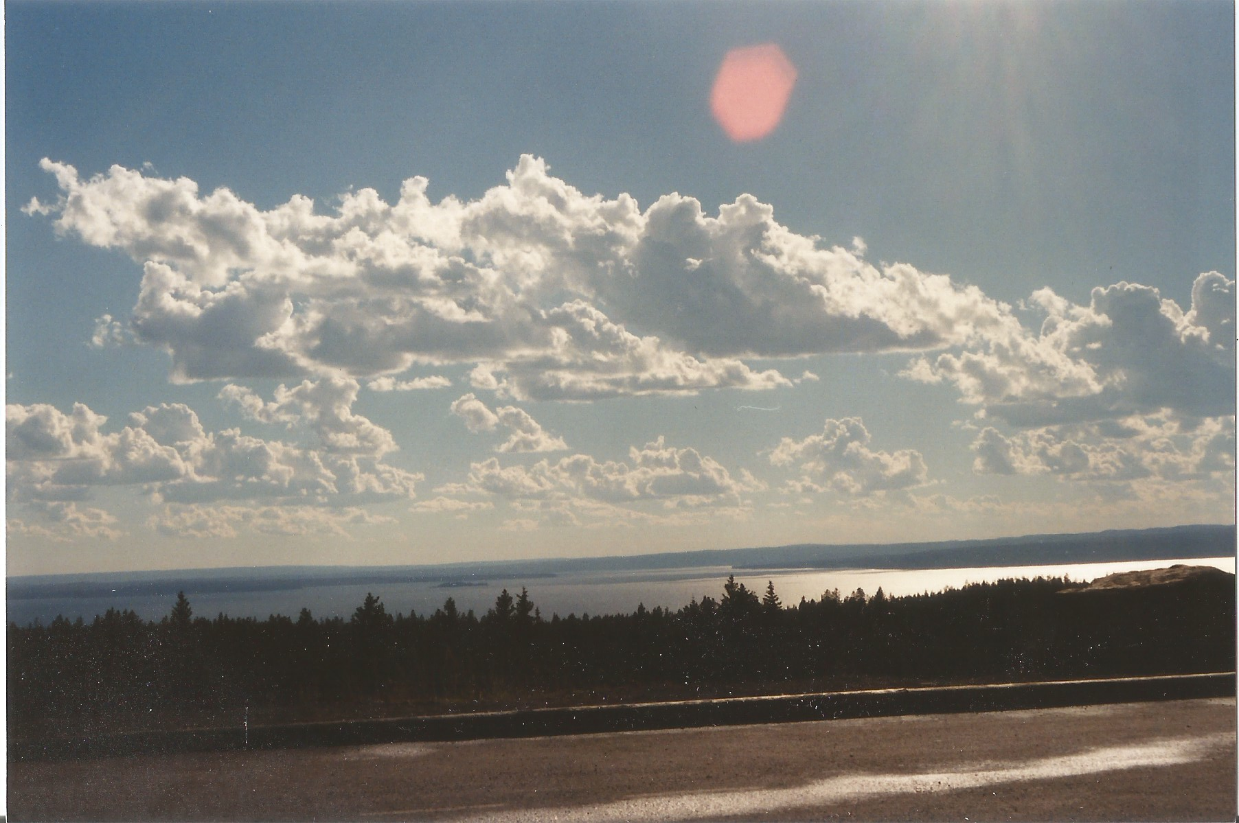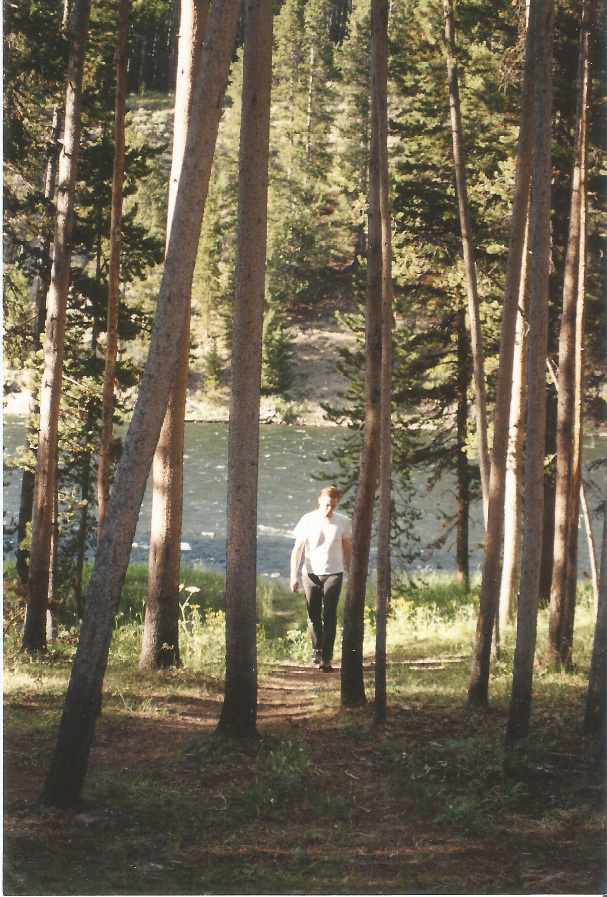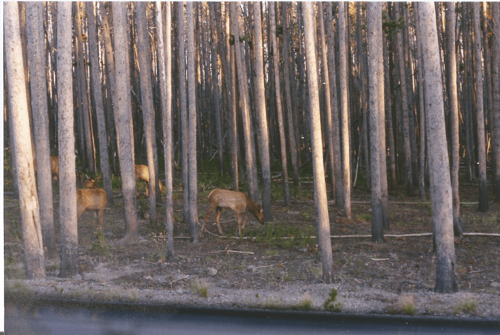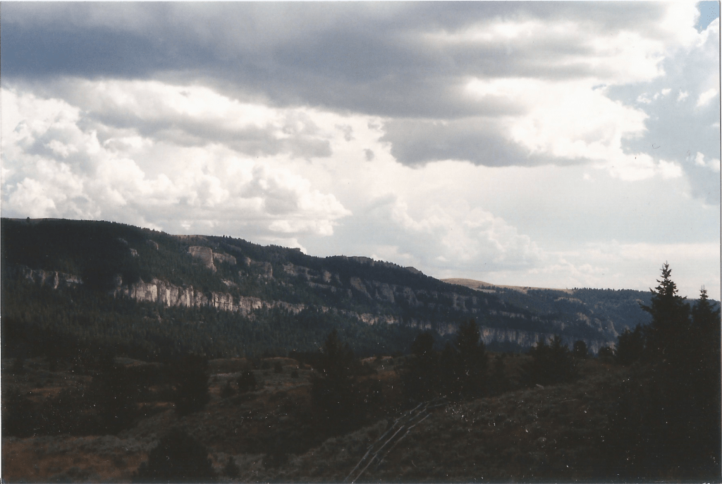 I resumed driving duties and got us to Buffalo, where he lunched at a Pizza Hut. We then set a course for Yellowstone. There were two routes through the mountains available to us. We chose “safest, fastest.” I don’t remember what the alternative was. Maybe it was “more scenic.” That would be hard to imagine, though, because the route before us, through the Big Horn Mountains, took my breath away.