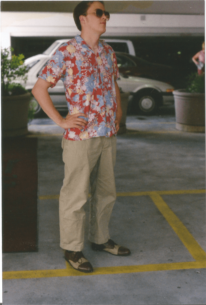Back on the Westside, we met up with Christian’s friend, Paloma, a teenager in a band called The Grown-Ups. We had coffee with Christian’s friend, Natasha, at Café Collage in Venice. Natasha referred to some razabillies as “rockasillies.” I thought they looked good. We rode the Metro Red Line, which I existed thanks to the film, Speed. There was no one else in the station or on the train, so I didn’t pay. We visited Chinatown and Little Tokyo. I’d heard of the former but not the latter. We visited the Grand Central Market and La Farmacia y Botánica Million Dollar on Broadway, then a thriving Latino shopping district. We went to Melrose, but I did’;t recognize the apartment from Melrose Place (which is actually in Los Feliz). At Aaardvark’s, I bought a white long sleeve mock-turtleneck with an RAF bulls eye and the message “Mods Rule.” A stranger asked me what Mods were.