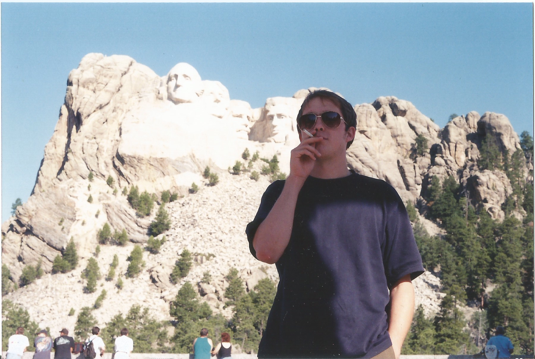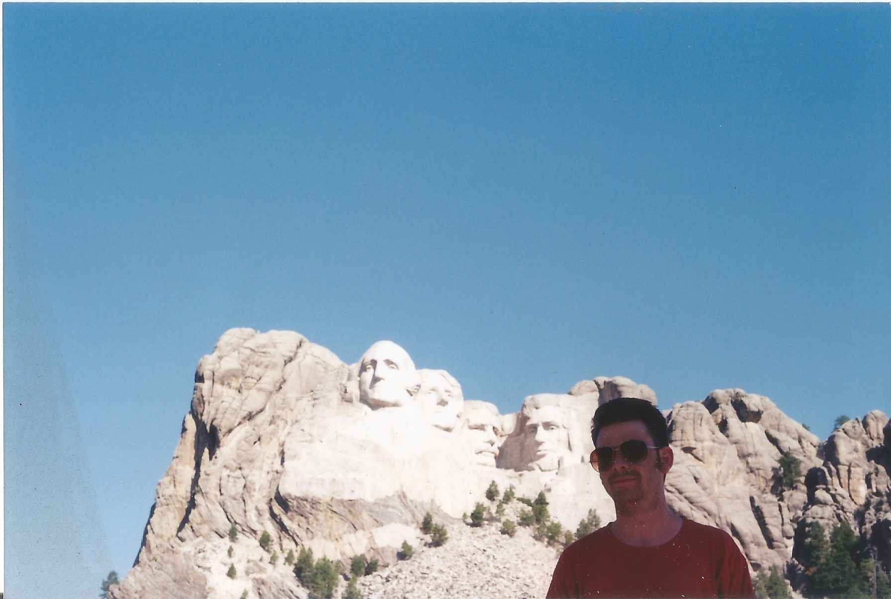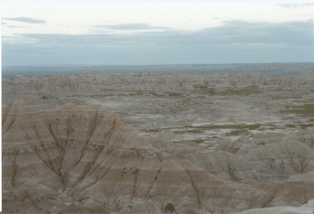 I didn’t have enough money left to go through North Dakota. To this day, it’s the only states in the Lower 48 that’s west of the Mississippi, that I’ve still never even been through. I was back in South Dakota when the sun rose. I tried to sleep at a rest stop but the heat (and humidity) and the NoDoz made it impossible to sleep — even though I was exhausted. It’s also hard for me to imagine being comfortable enough to sleep in a parking lot with strangers wandering around. I gave up, opened my itchy eyes, and drove on. It took a second to recognize myself in the rearview mirror. My face was puffy and my skin had turned a troubling shade of lavender. I felt bad. I smelled bad.