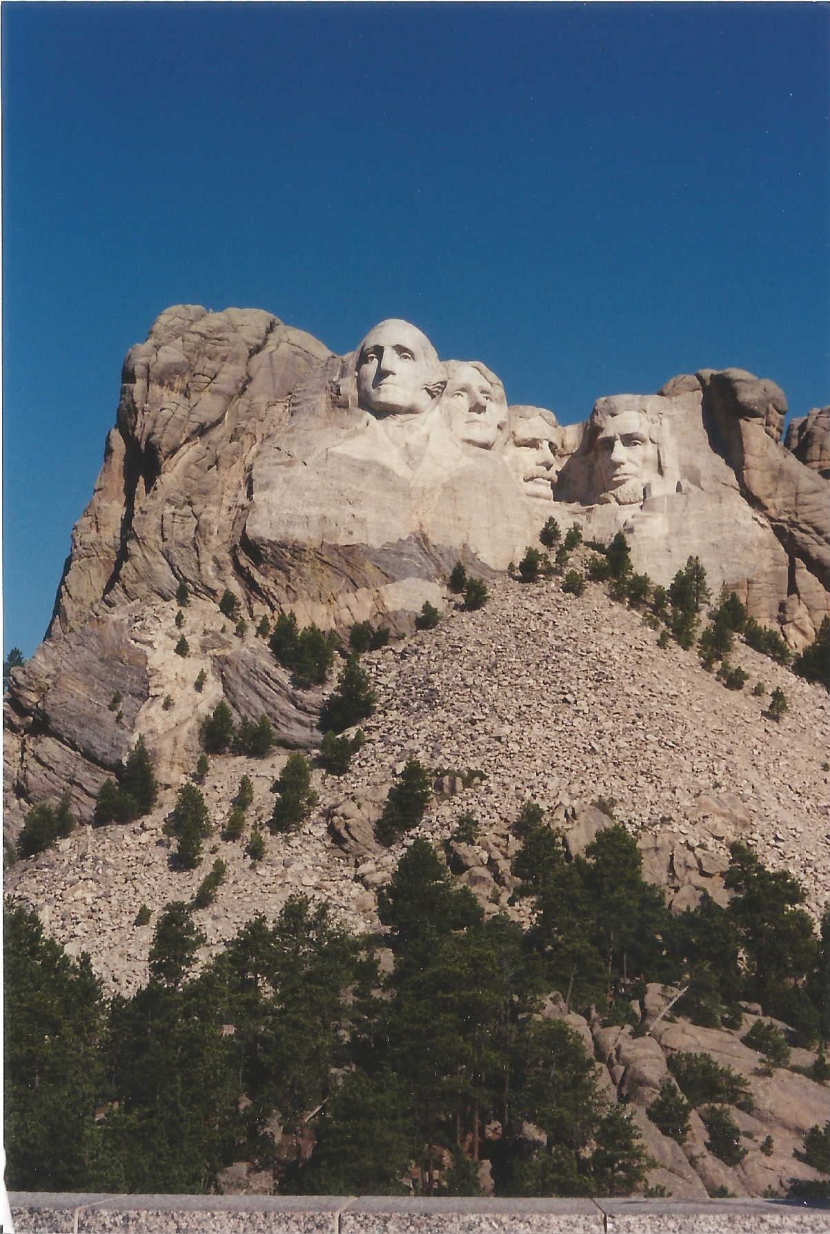 I woke up when Seth stopped in Moorcraft for gas. Seth and I debated whether or not it was worth it or not to add an extra hour to our trip with a visit to Devil’s Tower. Devil’s Tower, because it is unsullied by human hands — seemed more appealing to me than Mount Rushmore. It’s not that far from the freeway — nor is it exactly close. Seth was driving, though, and I was exhausted. We decided to drive on. The scenery, to my mind, was getting better everywhere, anyway. Wyoming was scrubby and wind-blown and the sky somehow seemed bigger. Everything also seemed to have a blue tint and looked somewhat like a day-for-night scene in an old Western. It was the sort of place that puts a fella in mind to listen to some Sons of the Pioneers. Get along, doggies.