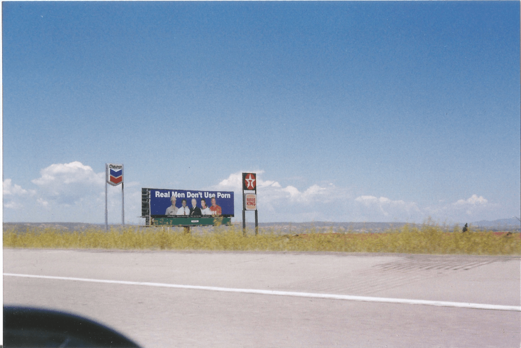 On our way out of Wyoming, we passed through Diamondville. In Utah, we grabbed a meal at the Polar King Drive-Inn, in Coalville. Diamonds to coal. Were we moving backwards? A billboard stating “Real men don’t use porn” confirmed that we were definitely in Utah.