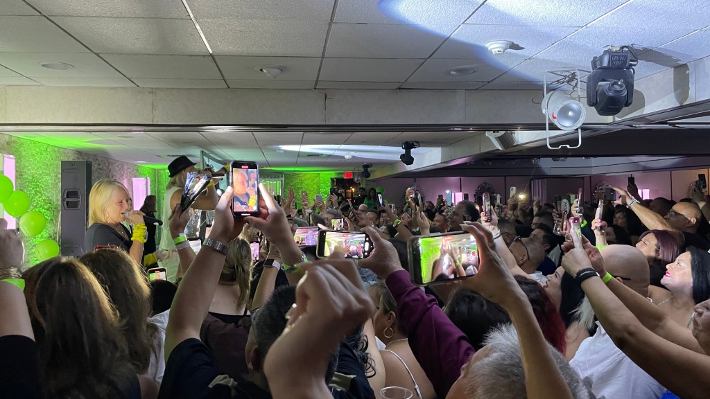 I told Irrum what I’d seen. I was even more surprised when she expressed that she still wanted to go — and so did her brother-in-law and a friend. So we headed to Steven’s Steakhouse in July knowing full well that we would be seeing no Canadian Le Pages but, rather, Americans Joy Dorris and Rob Hubertz. We figured, correctly, that even if not really lime, it would be an experience. And we were right. Opening was Jessica Williams, who with Arpeggio, had a hit in 1979 with “Love and Desire.” In another room was a band called the Black-Outs, who covered KROQ classics by the likes of The Cramps, The Cult, The Cure, Echo & the Bunnymen, Joy Division, Morrissey, et al. And Circus Disco DJ Martin Rodriguez was spinning. The mostly Latino and Southeast Asian crowd also included a boldly-dressed cohort of Romani who, Irrum’s brother-in-law said were styled like Jim Carrey in The Mask.