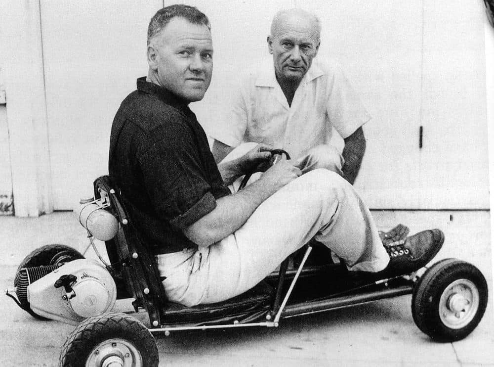 Art Ingels and Lou Borelli with the very first go-kart outside Ingels’s garage