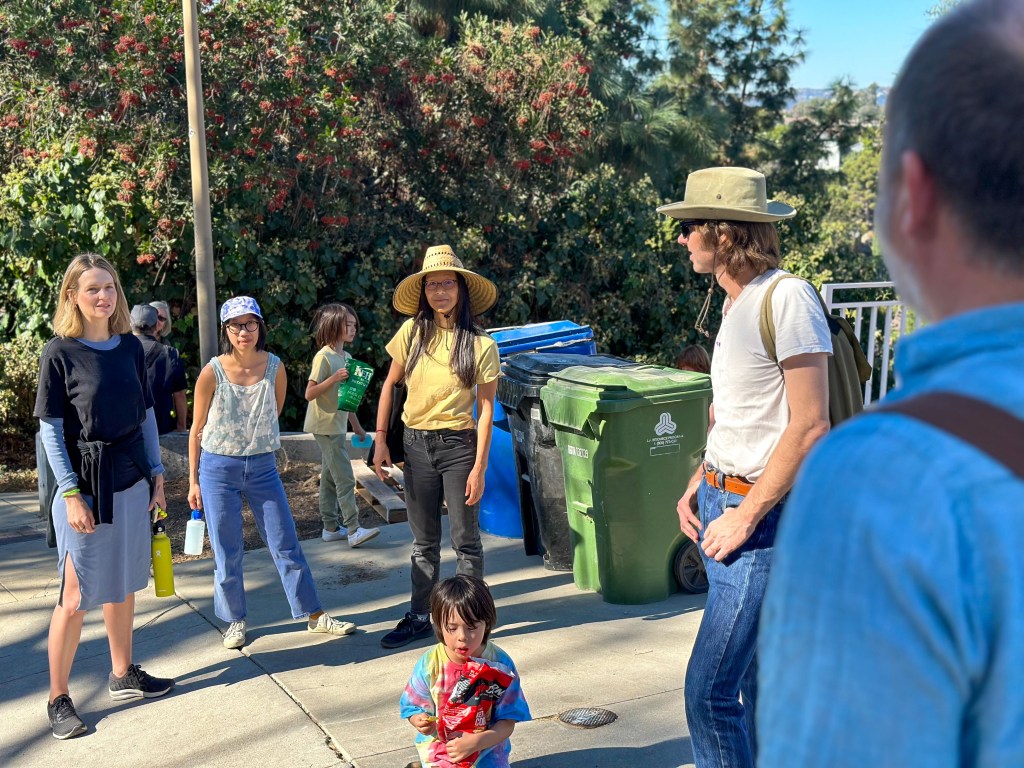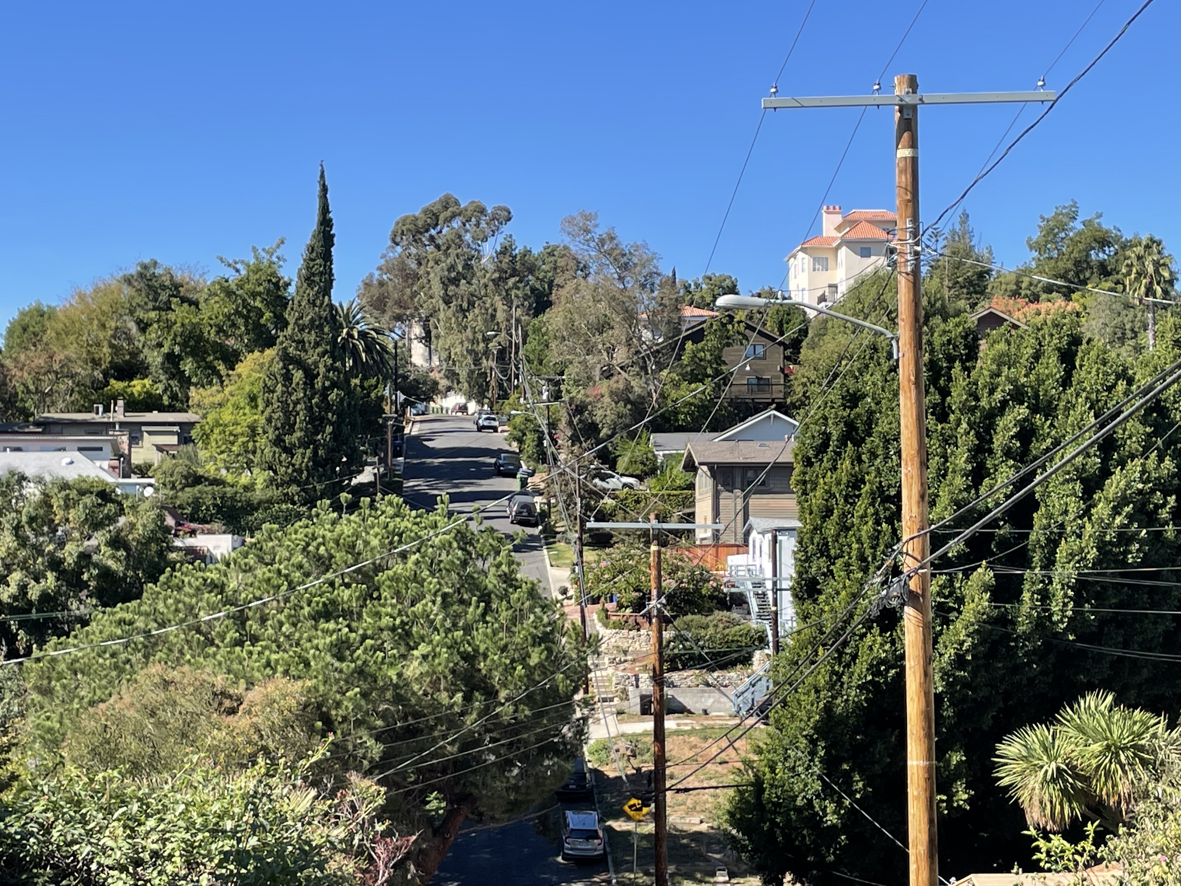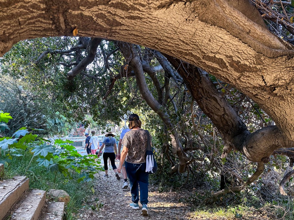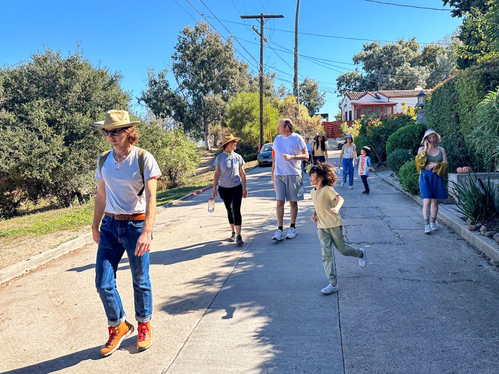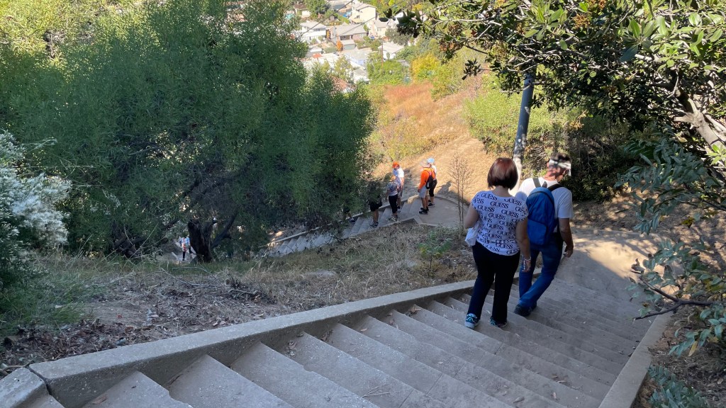 I think a lot of the group who bailed during the walk were perhaps a bit overwhelmed by the hilliness of the neighborhood. After all, not every Los Angeles neighborhood with “heights” in the name is hilly at all. “Heights,” like “village,” or “historic,” is often just one of those words I reckon is tacked on by developers to make a place sound appealing to homebuyers — not to accurately capture its character. “Elysian,” for example, comes from the GreekElysium” and means, “relating to or characteristic of heaven or paradise” — and while Elysian Heights is bucolic and appealing, suggesting that it is an affront to the perfection of Heaven might be a bit of a stretch. Plus, in Heaven, the temperature is always between 7 and 17 C. When I scheduled the walk, it was because the weather app predicted a high of 18. It instead reached a sweaty 28. Happy unexpected late autumn heatwave to us.