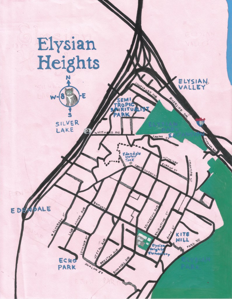 Pendersleigh & Sons Cartography’s Official Map of Elysian Heights — available reproduced on a variety of quality merchandise and in art prints of various sizes.