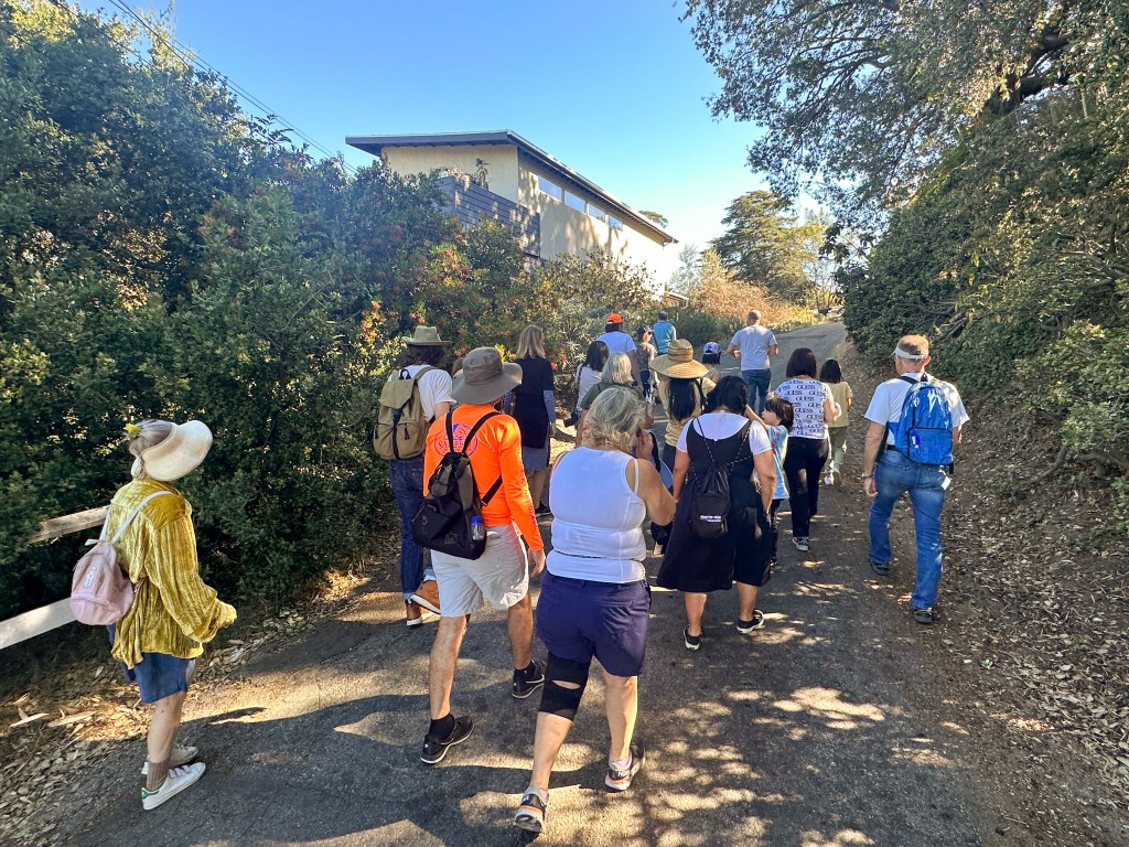 I meant to give people the option of walking up very steep Avon Terrace to see an early John Lautner home or waiting at the bottom for five minutes — but I overshot and and decided to skip it. I have walked to it before and, from the street, you can’t see much but the car port — which is striking, as car ports go, but still a car port. Were Kite Hill not currently fenced off by an actor who hopes to build a giant home with a freeway ramp-like driveway, we could’ve walked there more easily using a trail. Save Kite Hill.