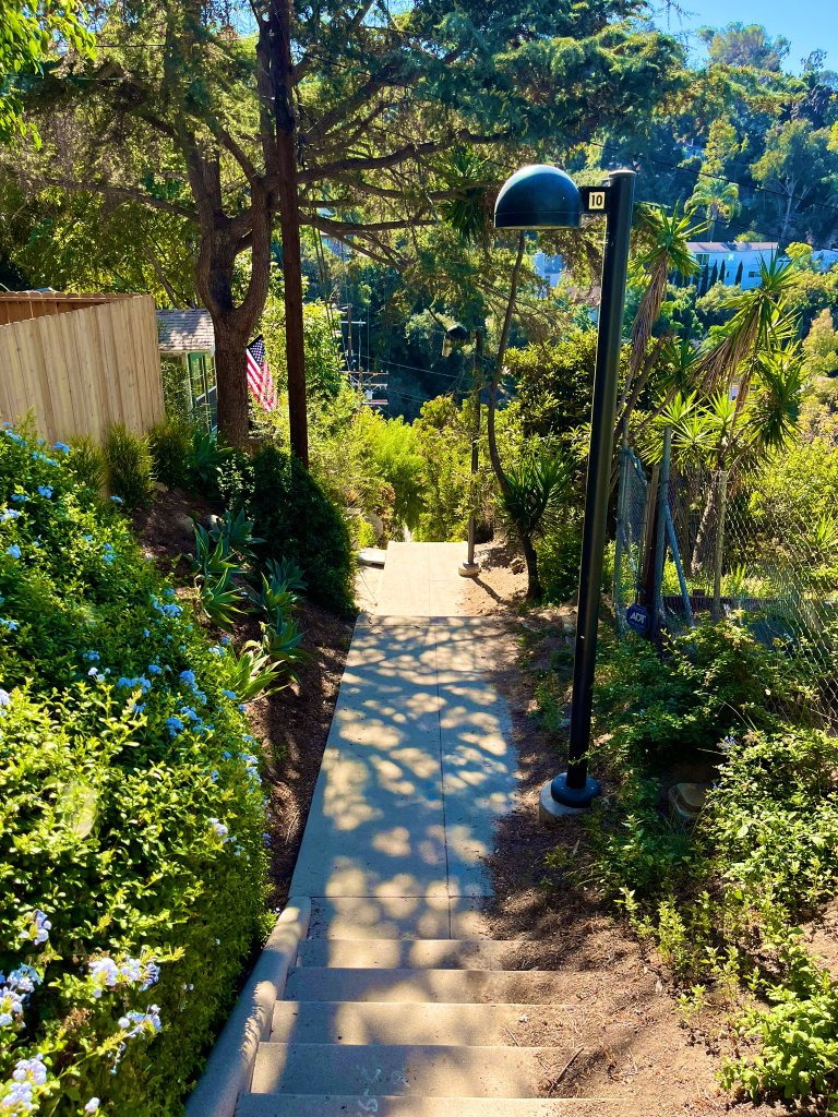 A visit to the Lemoyne House might’ve amused me and maybe Mike, but I decided it would be more interesting to end our trip with a walk down the Donaldson Street Stairs. There are stairs, as you’d expect from the name, at the bottom — but most of the block is a steep hill with a sidewalk on one side. The grade of the street is about 24% but the bottom is steeper. My assumption is that the city never got around to paving it because it was too steep… and so it’s been planted with all sorts of foliage. It reminds me of a similar unpaved and planted block of Maltman Avenue, in Silver Lake. Surely Maltman is named after Elysian Heights’s developer, John S. Maltman, I figured, so it felt to me look a fitting bookend to this exploration and this essay. Until next time!