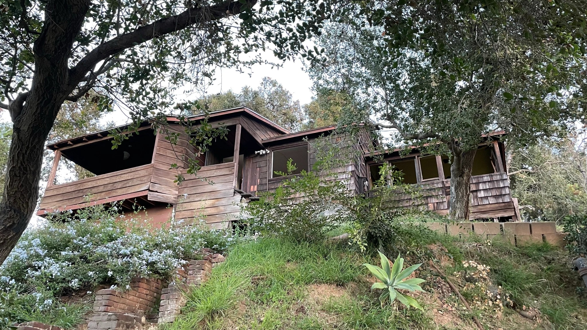 Paul Landacre was a wood engraver and printmaker. He was born in Columbus, Ohio in 1893. He moved to San Diego in 1917, where he met his wife, Margaret Gertrude McCreery (born in Missouri in 1891). They were married in 1925 and in 1932, moved into a cabin built in 1909 for Thomas C. Saunders. In 1963, Margaret died of cancer and a distraught Paul filled the cabin’s kithen with gas. Unfortunately, the gas ignited, covering Paul with burns, and he died two weeks later. The cabin was designated Los Angeles Historic-Cultural Monument No. 839 in 2006. Nevertheless, it’s utterly neglected and apparently being allowed to deteriorate until it returns to the soil.