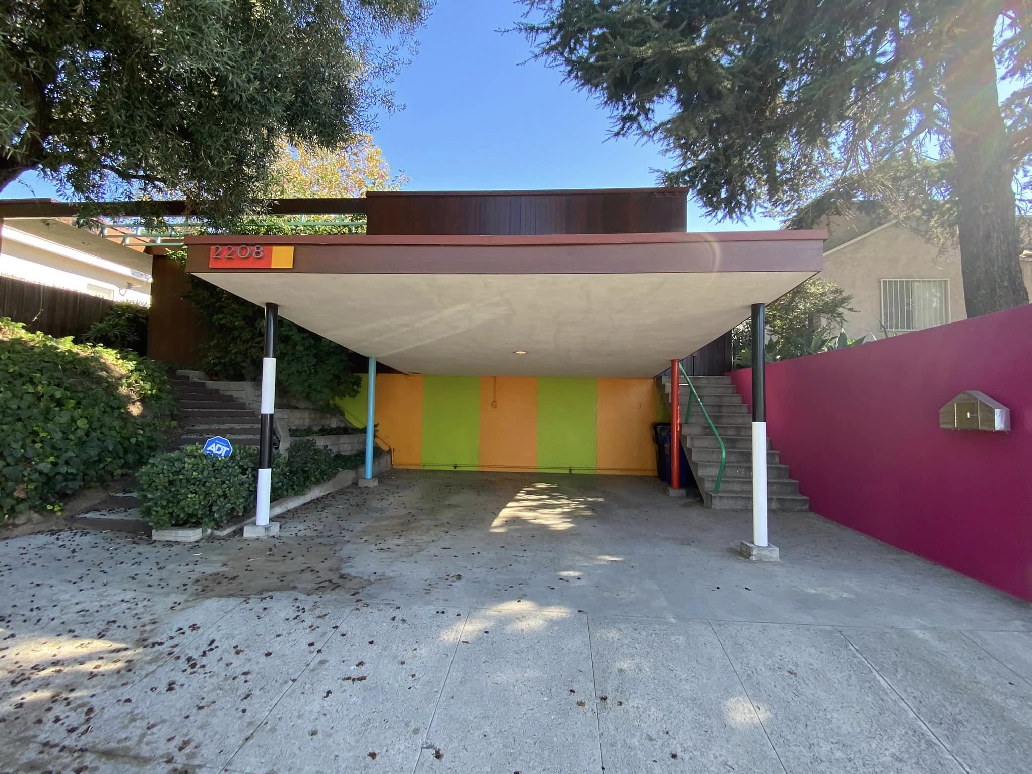 At the bottom of the stairway is the Garcetti-Walkefield Residence. It was designed in 1953 by Daniel Leonard Dworsky. Dworsky was a wrestler and American football player who played for the Los Angeles Dons before pivoting, unexpectedly, into architecture. I have been inside and there are no obvious signs that it was designed by a wrestler. Dworsky died at the age of 94 in 2022.
