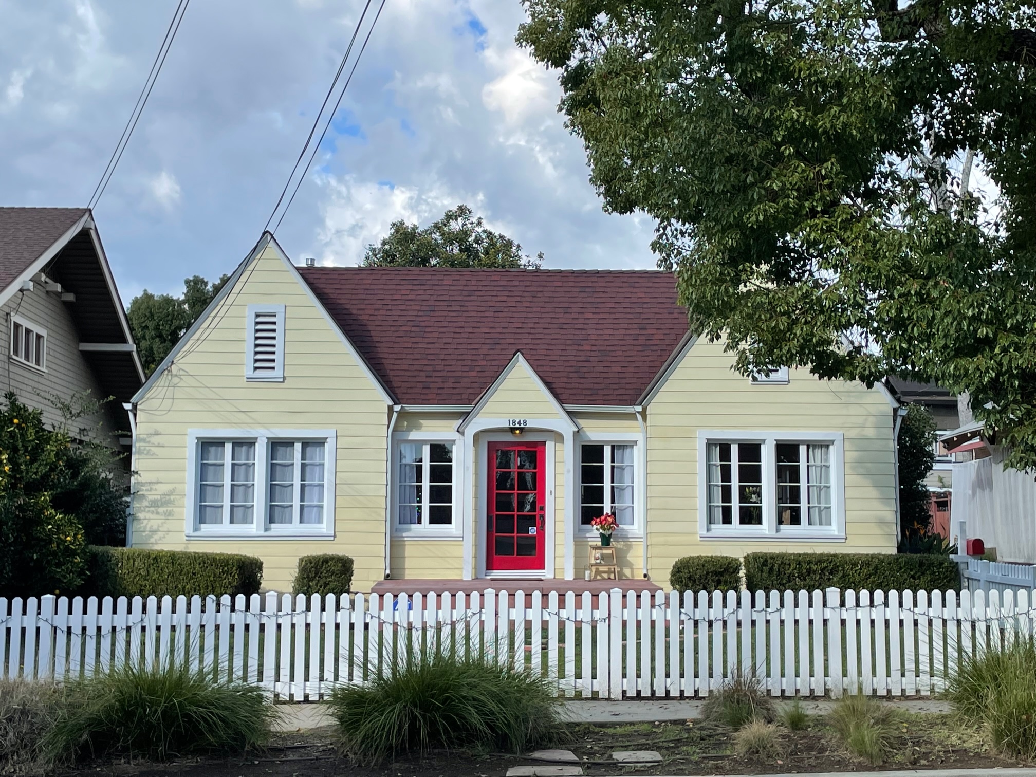 Disappointed but undaunted, I suggested we ride to the Pacific Asia Museum but, this time wisely checking beforehand, learned that it, too, is closed on Tuesdays. We decided to get lunch. Afterward, we rode to the house where Pee-Wee Herman did his “I meant to do that” trick and, across the street, his house in Pee-Wee’s Big Adventure. We cruised through Lacy Park on our way to El Molino Viejo, only to find — you guessed it — that it was closed — although it is not normally closed on Tuesdays. A note posted on a gate apologized for any inconvenience. We went back to Mike’s and then decided to restore our spirits with a film at the Vista, which was screening Zone of Interest.