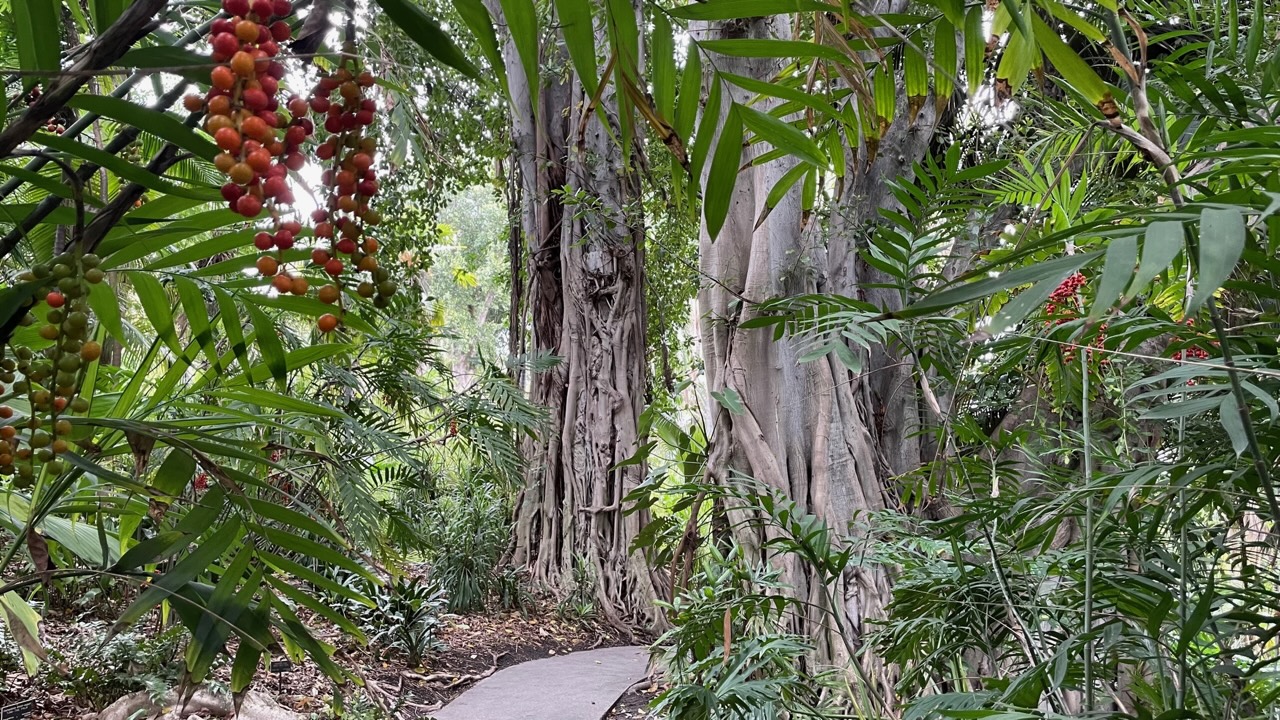 One of the many great things about the Huntington is that — despite how many times I’ve been there over the years — I always seem to stumble across something new to me. I realized that I usually rotate through the gardens in a counterclockwise direction. At the bottom of the clock, I usually stroll through the Australian Garden rather than the Subtropical Garden. This time I did the latter — and then I passed through the Jungle Garden. I walked up a winding path surrounded by Bromeliaceae and striking Mugumo trees I don’t recall having seen up close before. It’s not impossible that I’ve never walked along this path before.