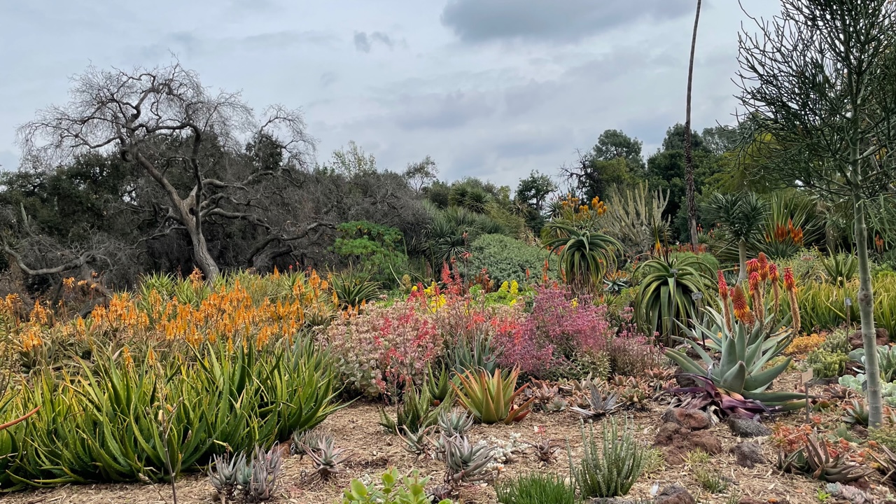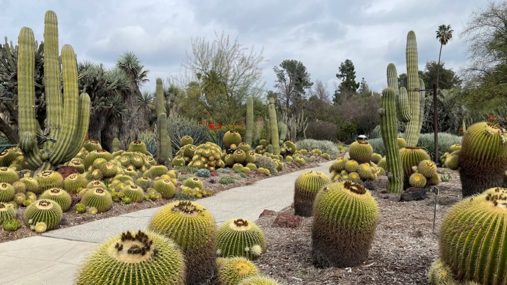 Afterward, I wound down to the Desert Garden, where the many of the cacti and other succulents were swollen with rain. The atonal chorus of birds, there, was especially discordant and cacophonous — but somehow mellifluous.