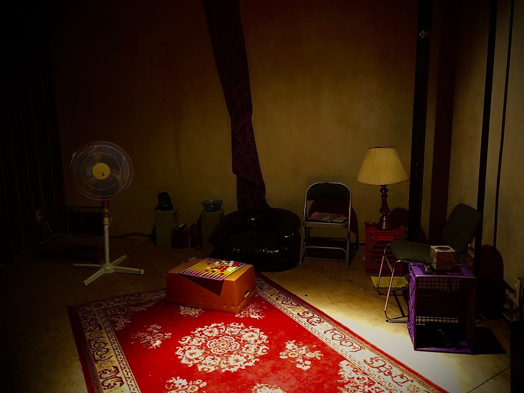 Later, I would bring a lamp from my apartment, Pendersleigh. I would then enter the darkened room and find my way to the lamp, which provided it with better ambiance. There was some light, though, as light made its way up through seams in the floors and walls, along with muffled voices, into the hidden space. Given sufficient time for one’s eyes to adjust, tiny shafts and points pierced the darkness providing it the effect of a stuffy planetarium.
