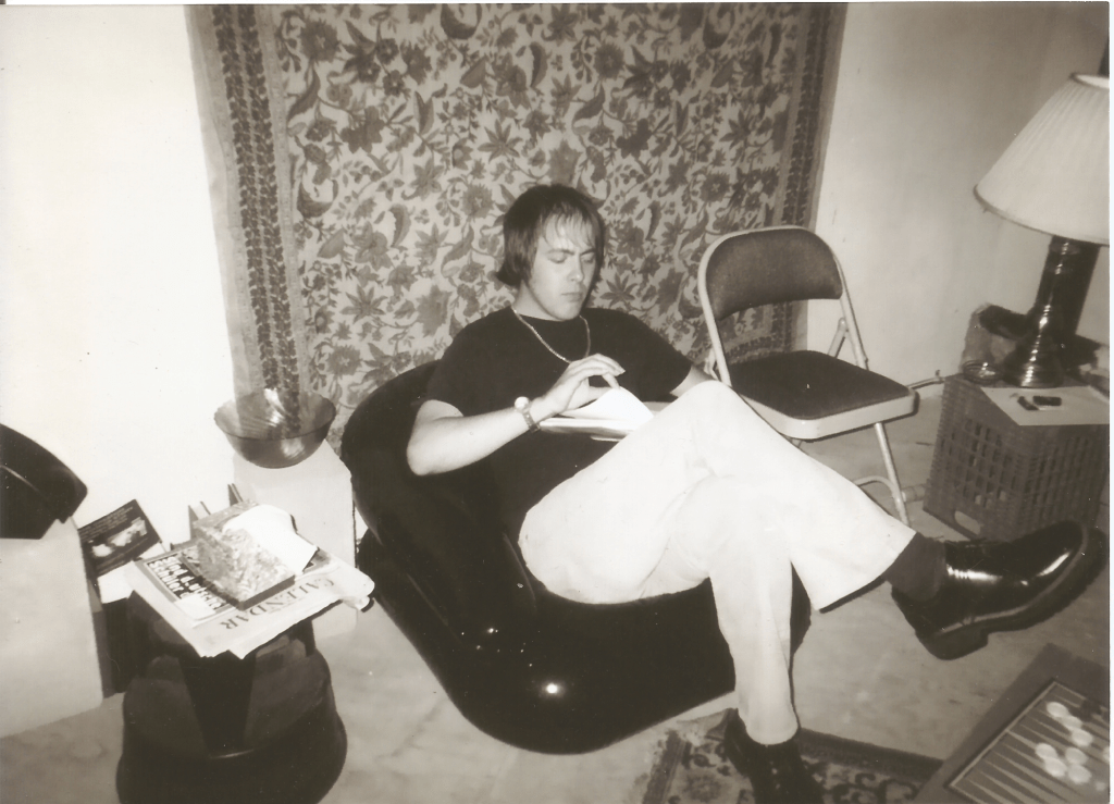 J– and I agreed that we would show other people the Paisley Lounge eventually. It would be the secret hideout of a secret order. I named it the Clandestine Order of Illuminated Gentlemen — or “COIG” for short. We came up with a secret gesture that we would employ when the time was right to retreat to the lounge for a smoke session. If you think I’m going to share it here, you’re mistaken. I believe that it was J– who brought a tapestry to hang on the wall of the lounge. He, or a subsequent member, also brought an inflatable chair, which we (perhaps me) inflated once safely inside. I donated a rug, a fan, and a digital clock. We commandeered a few folding chairs and milk crates. There was an ashtray or two, of course.