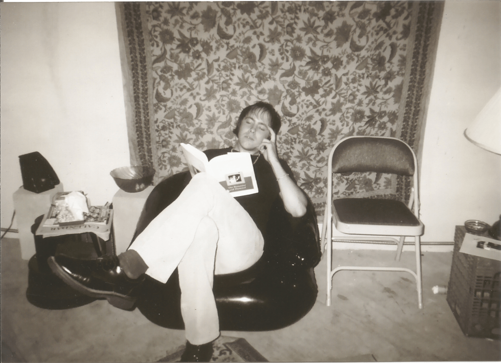 After that scare, my visits were more judicious and less frequent. There were other places to smoke where doing so was less likely to cost us our jobs. Now and then I’d pop into the lounge by myself or, on rare occasions, with a partner. It think it was another mezzanine employee, and not a full COIG member (N– or a different B–) who snapped a couple of mock-serious photos of me reading This Beautiful and the Damned so that I could develop a roll of film mostly snapped at the abandoned zoo in Griffith Park for my 30th.