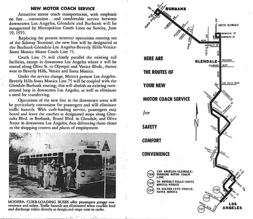 The city’s first true public transit agency, the Los Angeles Metropolitan Transit Agency (LAMTA) took over mass transit operations in 1958. That same year, the 2 Freeway terminus opened in Silver Lake, along what had been part of the Glendale-Burbank Line’s right-of-way. Part of the rest of that right-of-way remains a popular hiking trail.
