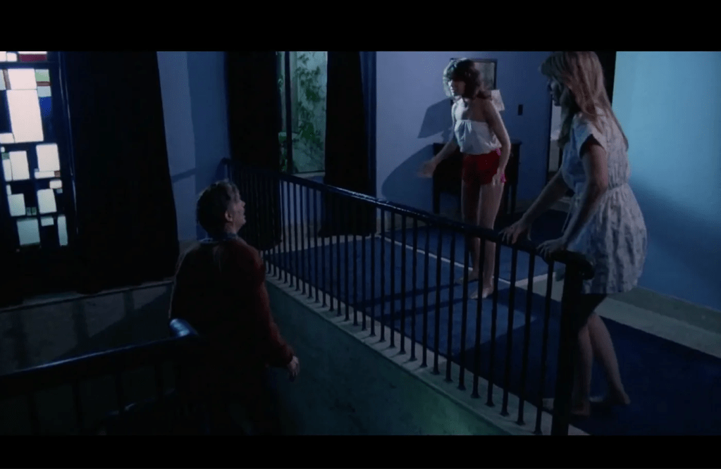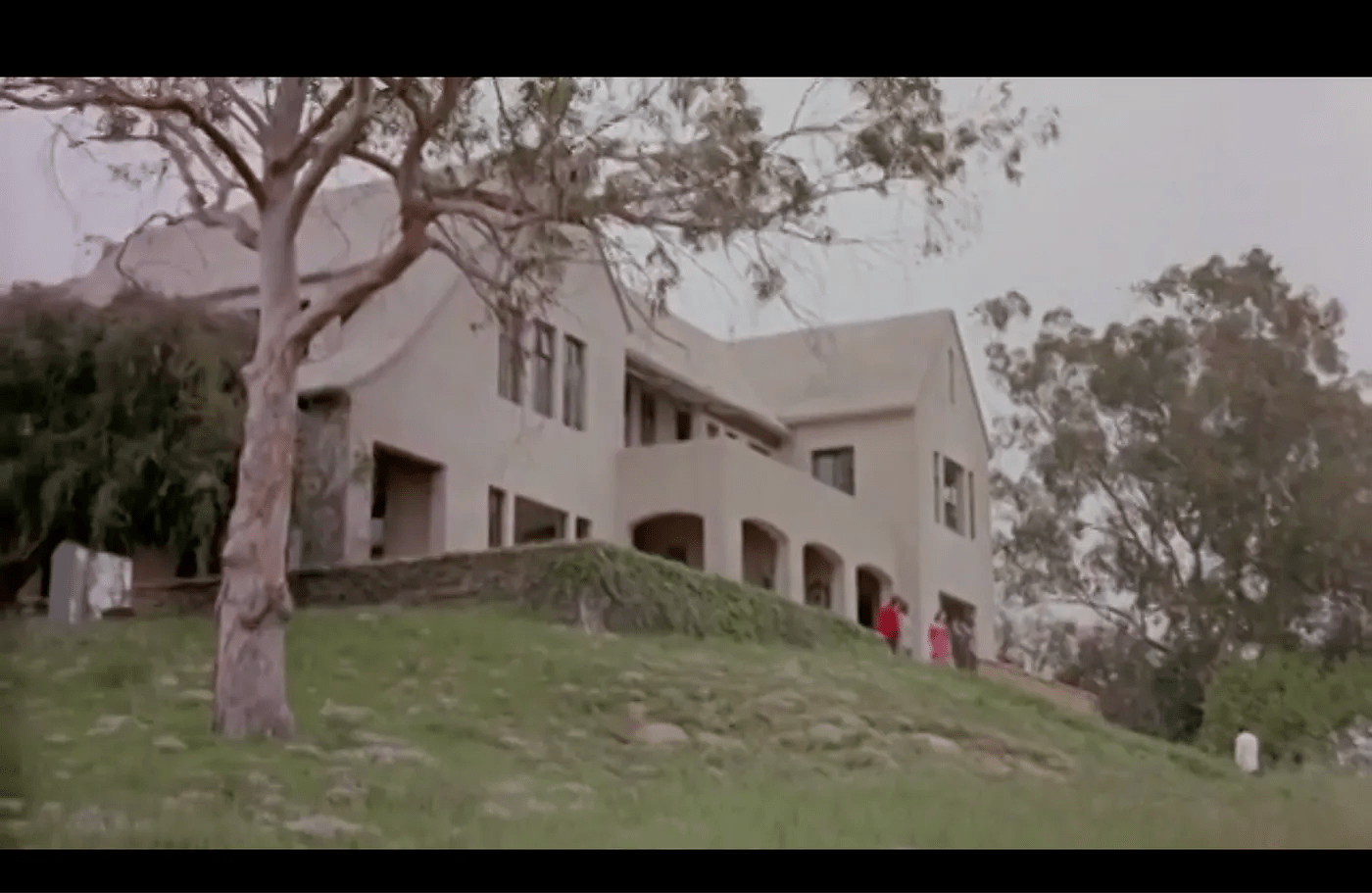 Superstition, a supernatural/haunted house/giallo/slasher hodgepodge of a horror film, was shot at the estate in 1981. The filmmakers seem to have incorporated the then-ongoing restoration of the home into the set design. In it, the cursed “old Sharack place” is owned by the church. Its grizzly history of murder naturally makes it a popular “make out place” with teenagers prone to bad decisions. The film affords lots of interior glimpses of the various rooms of the house as well as its reinforced concrete, the copious application of travertine, and the almost completely tile-covered kitchen. Although released abroad in 1982, the film only received limited release in the US in early 1985.