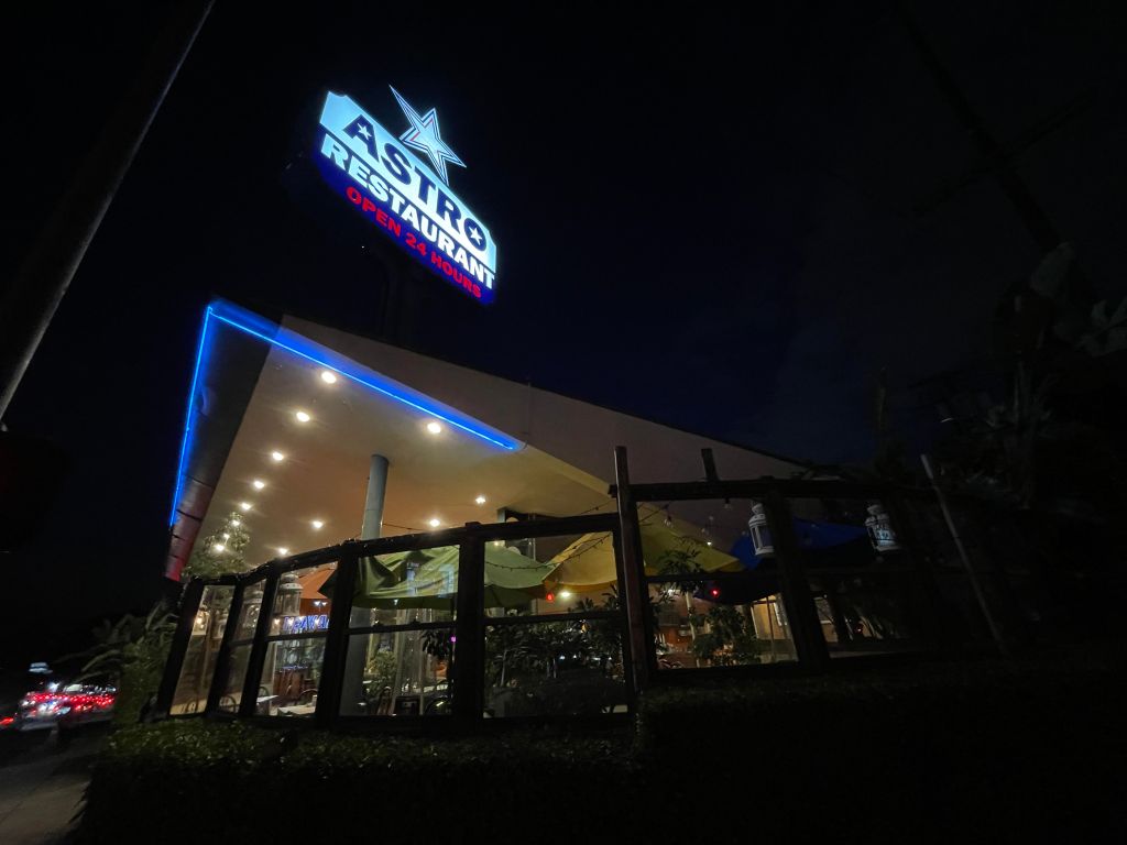 In Los Angeles, the name of the diner/carhop is sometimes the only hint of Hellenism — which is why I assume that Nick’s Diner in Pico-Robertson (1946 until 2022) and Nick’s Cafe in Dogtown (1948-the present) were likely founded by Greeks. Some diners I know were. The original Astro was founded in 1966 by Harry Siafaris. The Astro in the Hollywood Studio District was opened in 1974 by Cosmos Kapantzos. The Astro in Silver Lake was opened in 1974 by Peter Metsos.