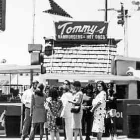 One of the most famous local hamburger chains is also one of the oldest with Greek roots: Original Tommys. Founder Thomas James “Tommy,” the son of Greek immigrants Nick and Katherine Koulax, opened the original Tommy’s in what’s now Filipinotown in 1946. As of 2023, there were 32 locations of Tommy’s – and an almost equal number of imitators. Tommy’s has never brought legal action — perhaps because Tommy’s, itself, could be reasonably accused of being an imitation of the much older Ptomaine Tommy’s chain, founded in 1913 and the birthplace of the chili burger — but not Greek.