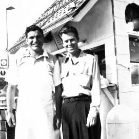Only a few years after the Original Tommy’s was founded, another local chain was founded by a son of Greek immigrants. Chris George Pelonis born in Chicago in 1922 to George and Nicoleta Pelonis. The Pelonis family came to California around 1930. Pelonis opened his first restaurant in 1940. In 1949, Chris Pelonis borrowed $2,000 from his father to co-found Chris’ & Pitts’ Bar-B-Q with his business partner, Morris Pittman. The first location opened in Downey. For a time, their barbecue sauce was the best-selling in the nation. Pelonis bought out Pittman, who wished to retire, in 1963. At its peak, the chain boasted twelve locations. Pelonis’s wife, Andronikki, died in 1993. Chris lived to the age of 96, dying in 2018.