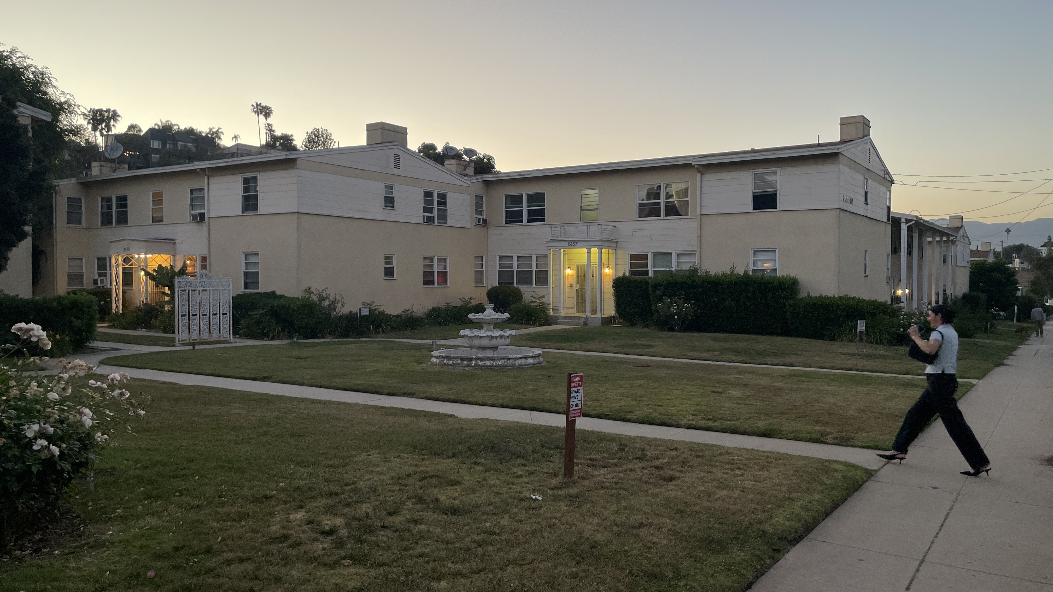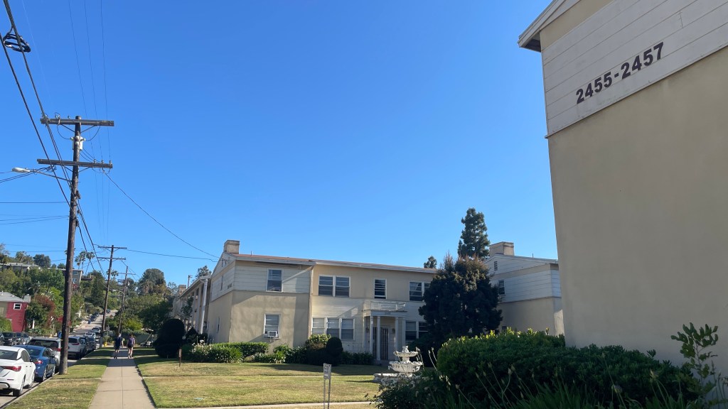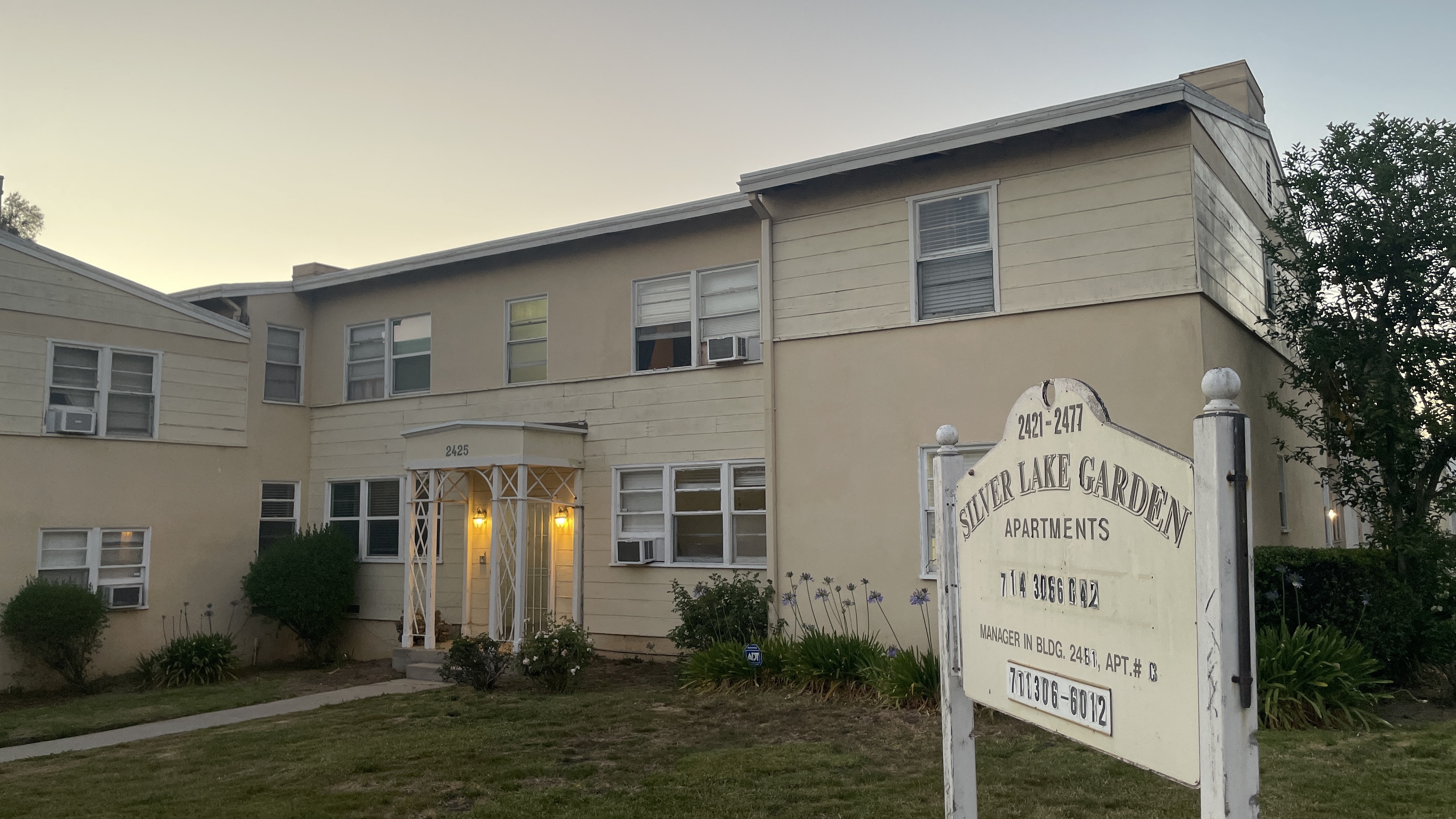 In Silver Lake, one encounters a variety of types of multi-dwelling residences in a variety of architectural styles. Mid-rises, duplexes, five-over-ones, and small lot subdivisions are all common. In a previous “Ask Silver Lake,” we looked at our community’s beloved bungalow courts. In an “Ask Silver Lake” exploring Mid-Century Modernism, we admired several apartments designed by the great Rudolph Schindler. In Silver Lake, there is one building typology represented by just one example – the garden apartment. That lone Silver Lake garden apartment is named, rather straightforwardly, Silver Lake Garden Apartments.