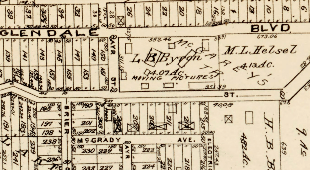A map from 1923 shows the property on which Silver Lake Garden Apartments are located mislabeled McGarey’s Tract. The surrounding area was subdivided as St. Alban’s Lake Place in 1922.