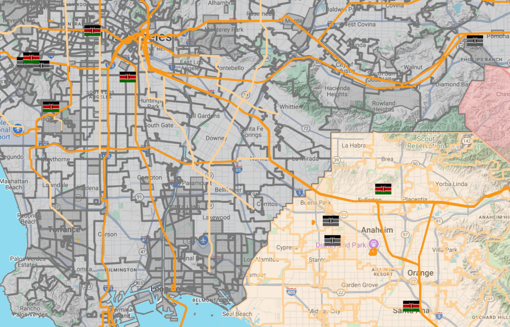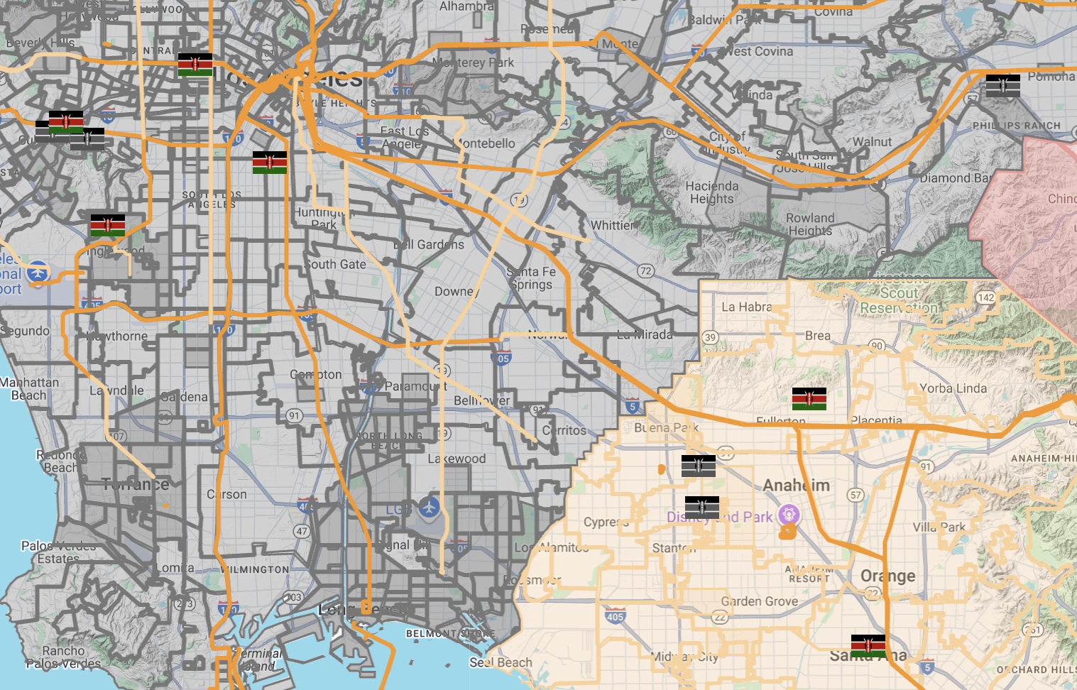 Other organizations serving Kenyan Angelenos include the following: Kenyans in Southern California United (a Facebook group), Medical Missions Kenya and Hunger Relief (an organization is involved in medical mission work and hunger relief efforts in Kenya), and The Samburu Project (a non-profit organization that focuses on community development in Samburu, Kenya, primarily by providing access to clean water and supporting related initiatives in health, education, and women’s empowerment).