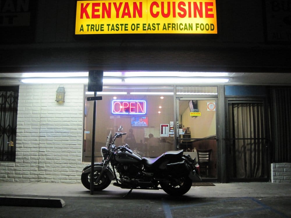 Kenyan Café and Cuisine, in Anaheim, opened as Kenyan Cuisine in 2009. In 2011, the halal restaurant was taken over by chef Charles Njuguna, who changed its name to Kenyan Café and Cuisine. It closed “temporarily” in 2018 and, in 2025, remains so.