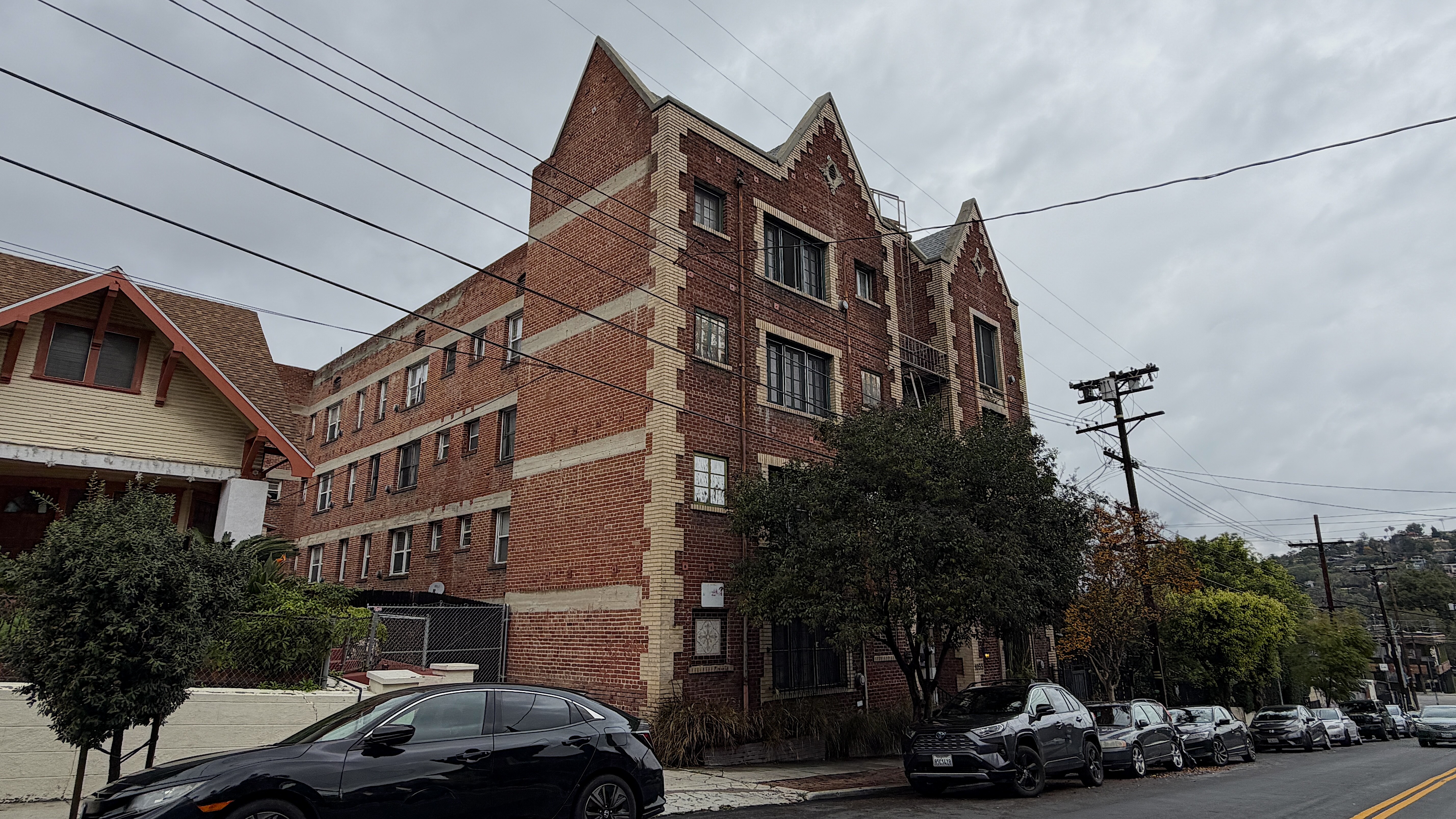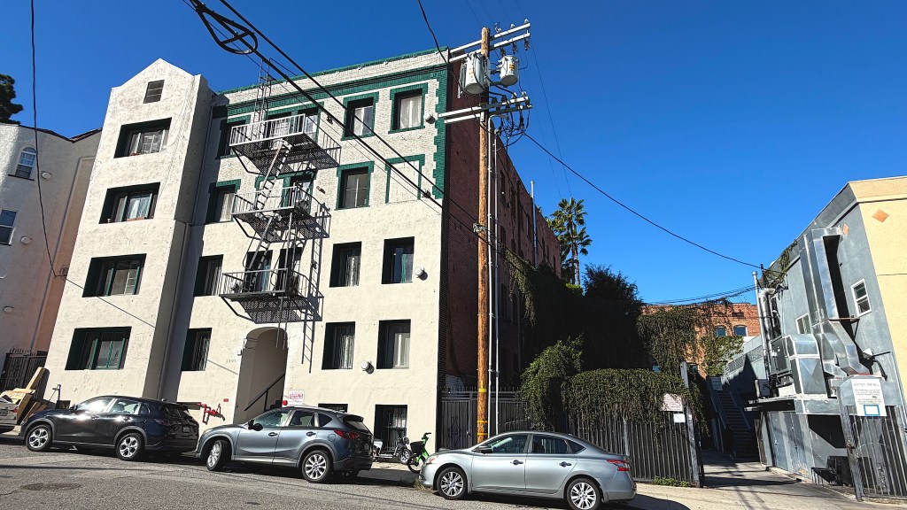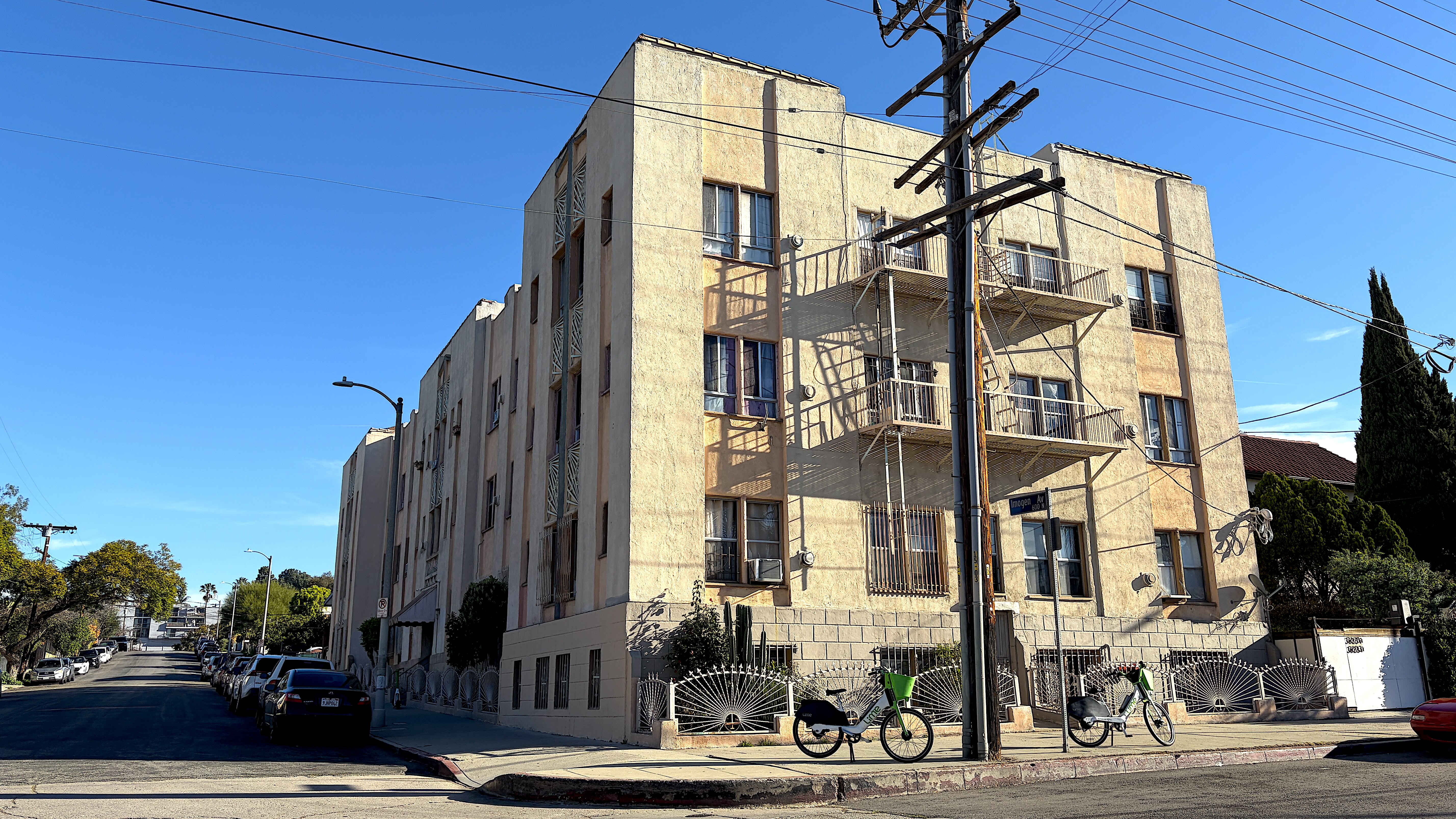 The 30-unit, four-story Art Deco-style Greystone Apartments at 600 Imogen Avenue were completed in 1930, the year Los Angeles became one of the first major US cities to adopt parking requirements for new apartment buildings. Construction presumably began before the mandate passed because no car storage was included in the apartments, which were located on LARy’s L Line (and now served by the 10).